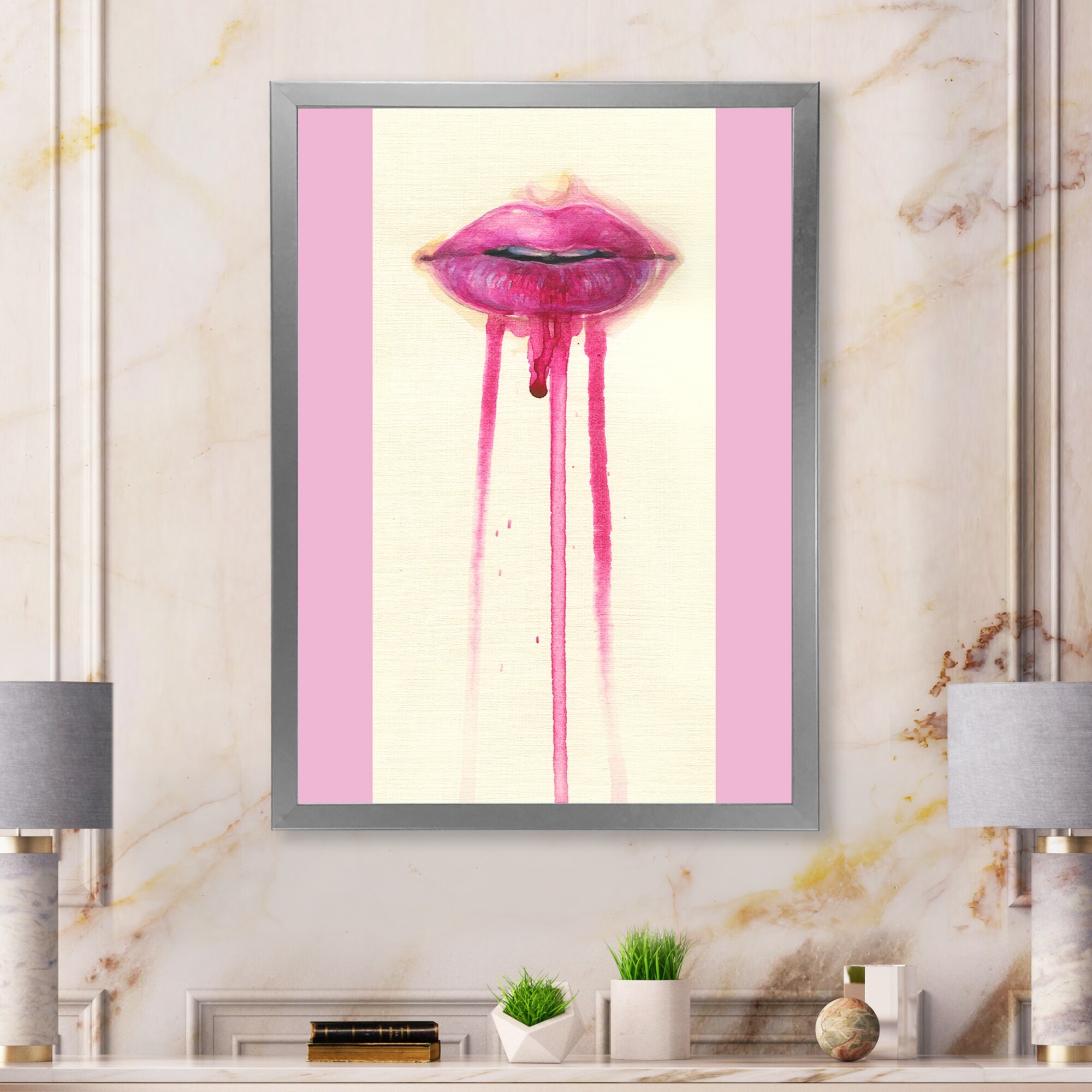 Designart "Lips With Vivid Make Up" Glam Framed Wall Art