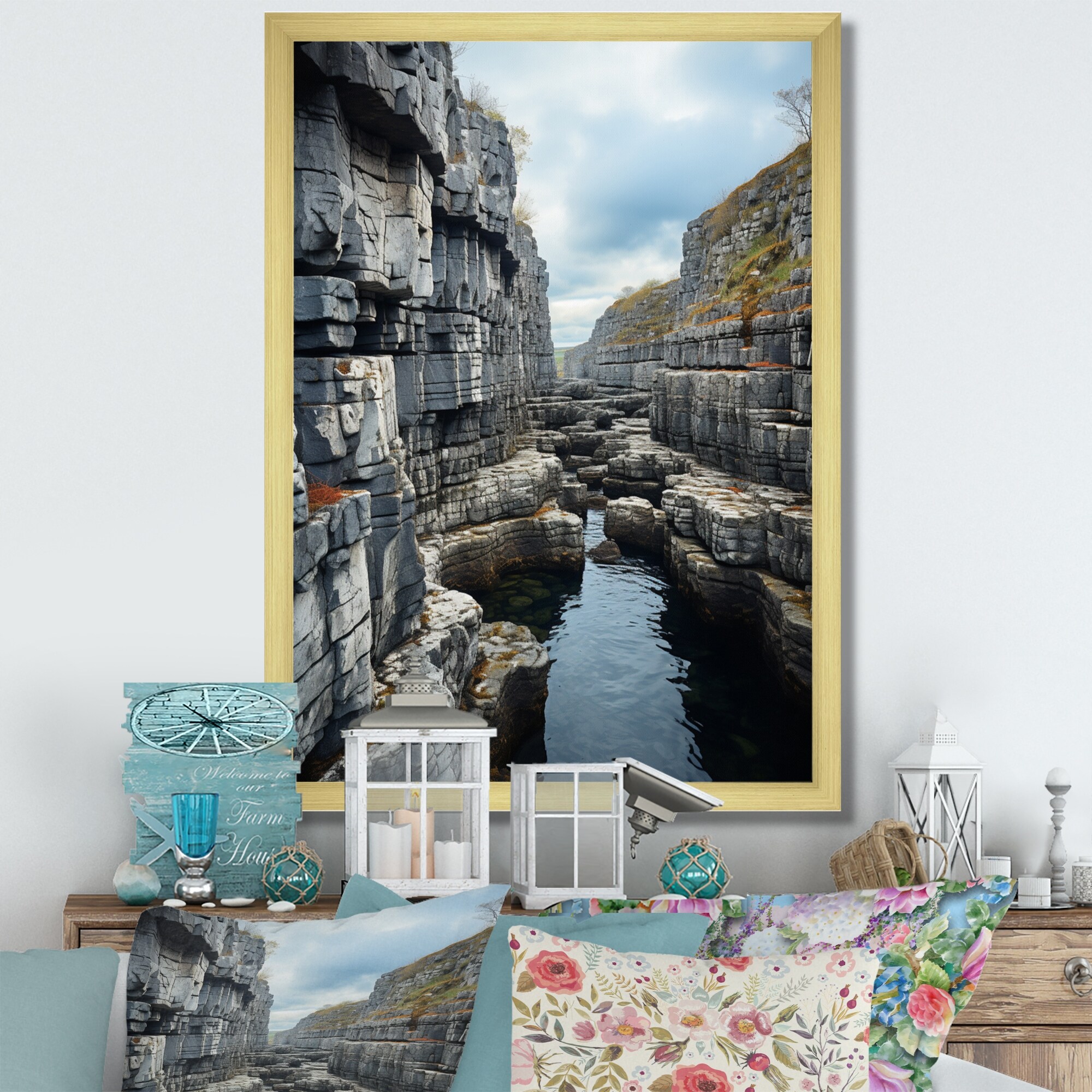 Designart "Ireland The Burren Clif II" Ireland Framed Canvas Wall Art