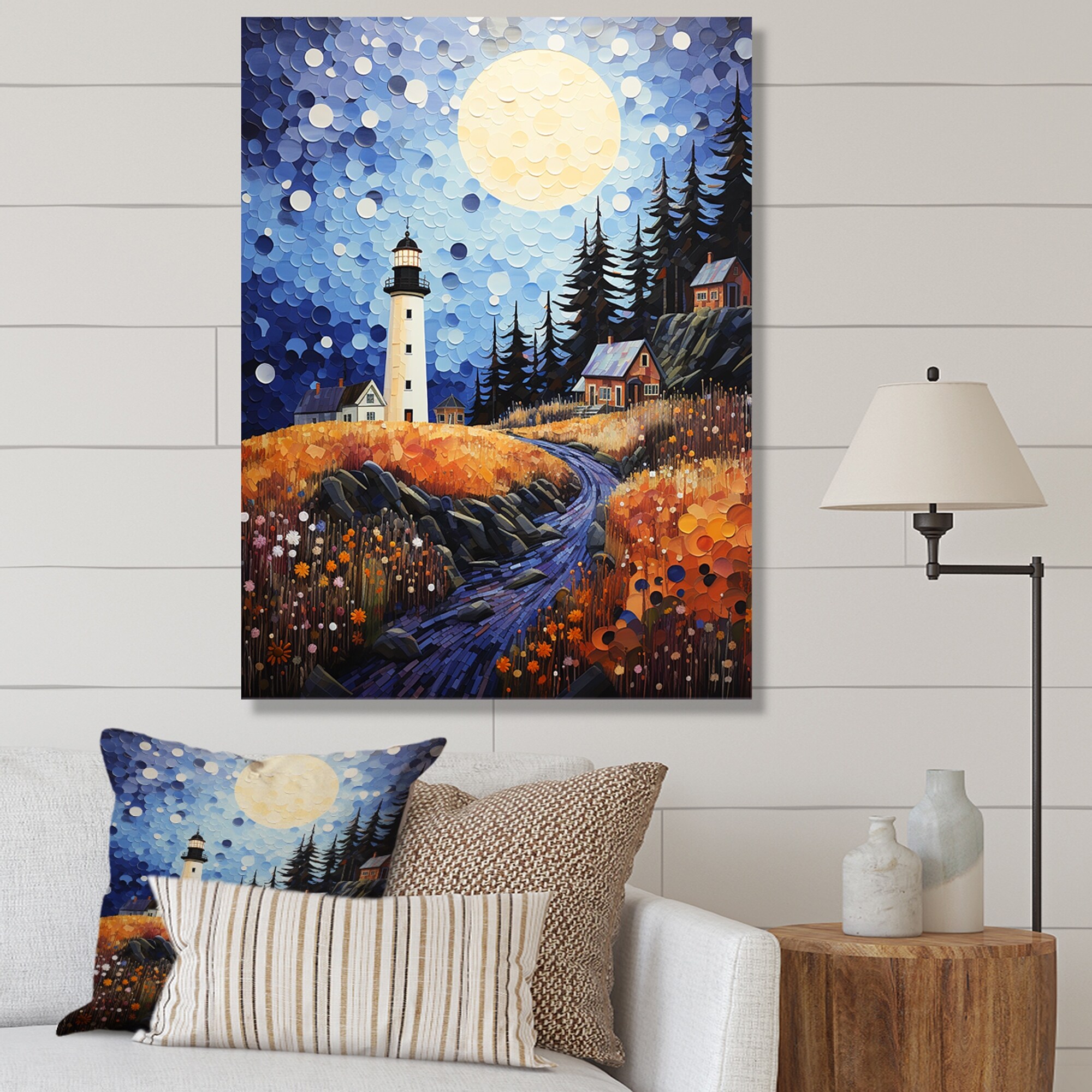 Designart "Dots Lighthouses Guiding I" Lighthouses Wall Art Prints