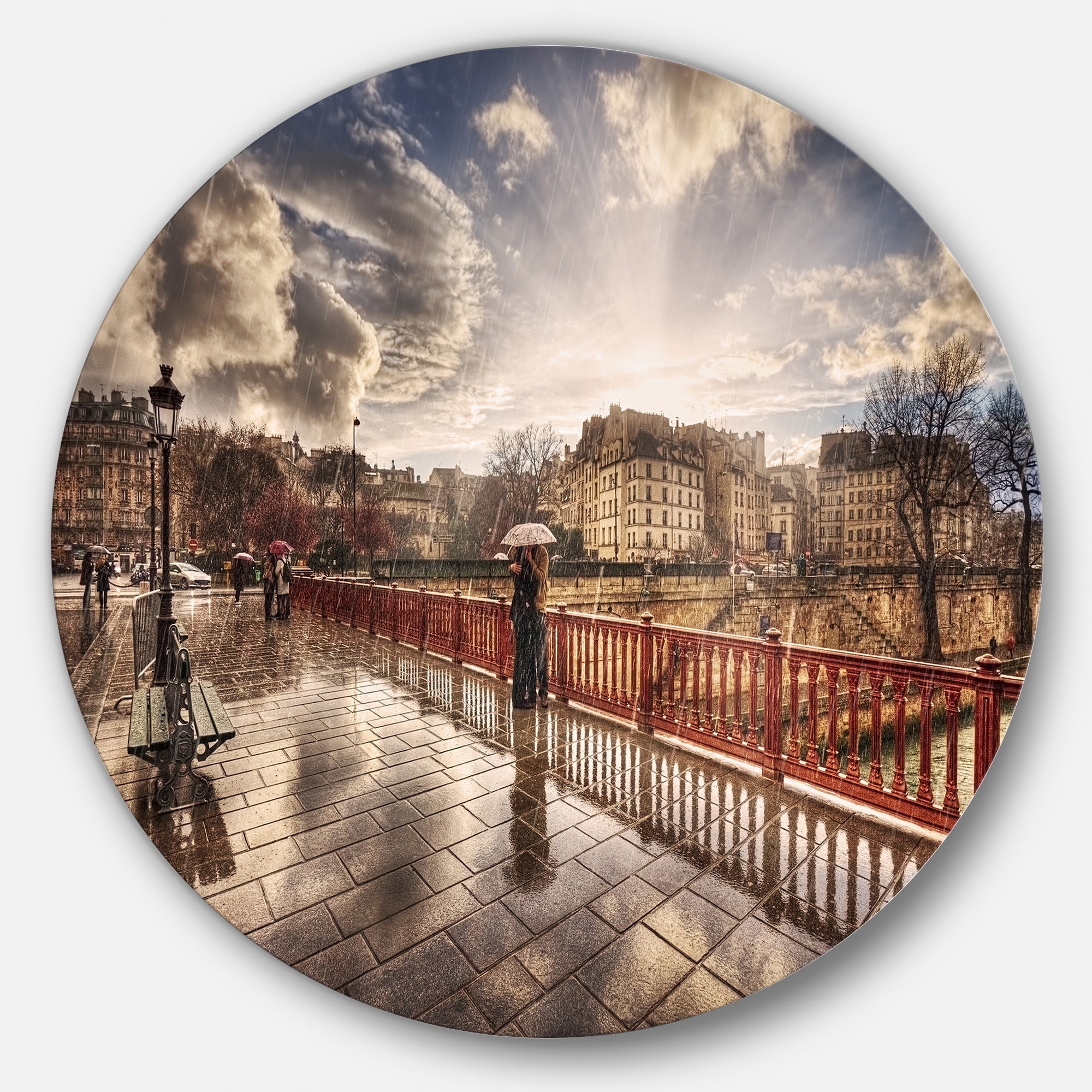 Designart 'Bridge in Rain' Landscape Photo Round Metal Wall Art
