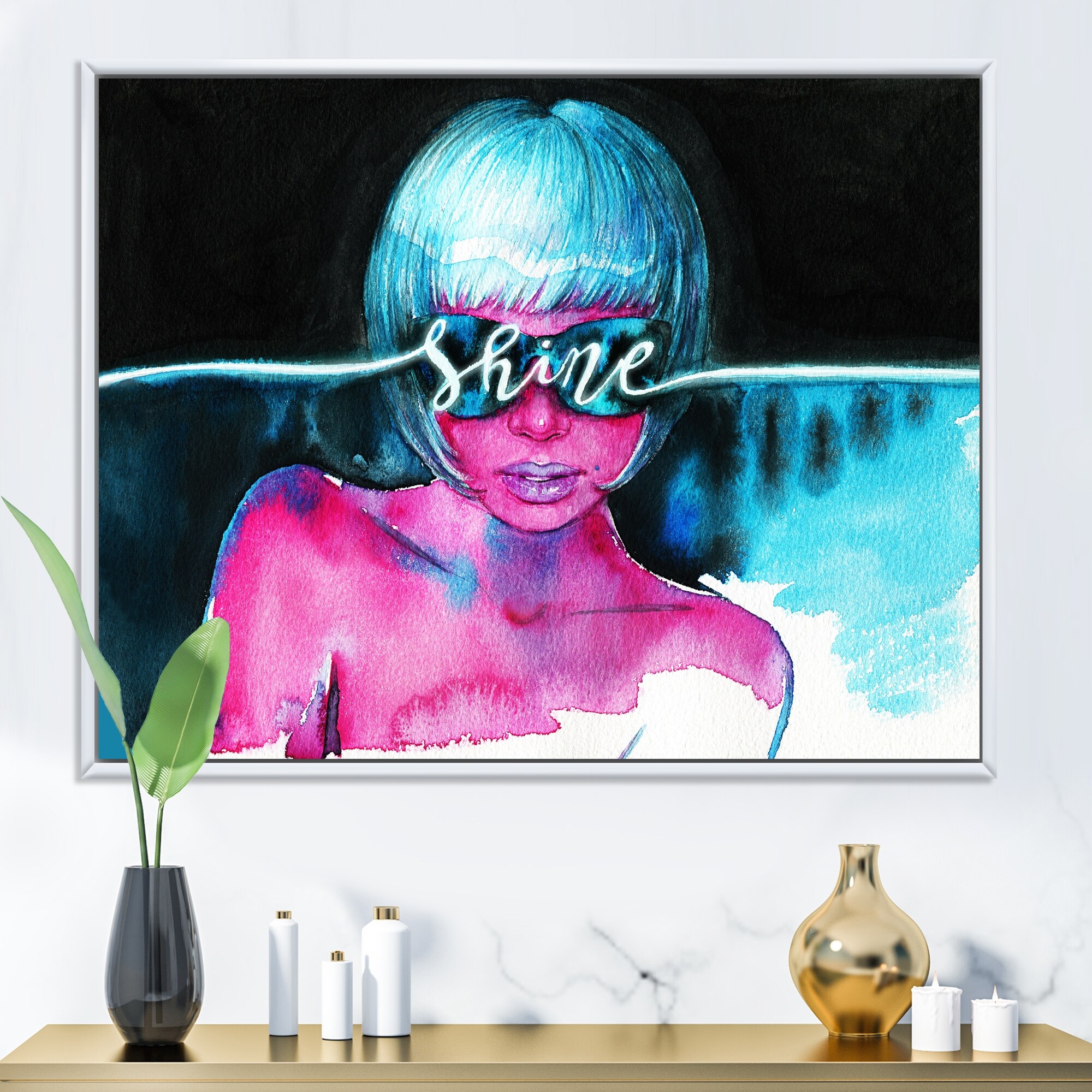 Designart "Shine Turquoise Sensual Portrait II" Glam Framed Canvas Wall Art