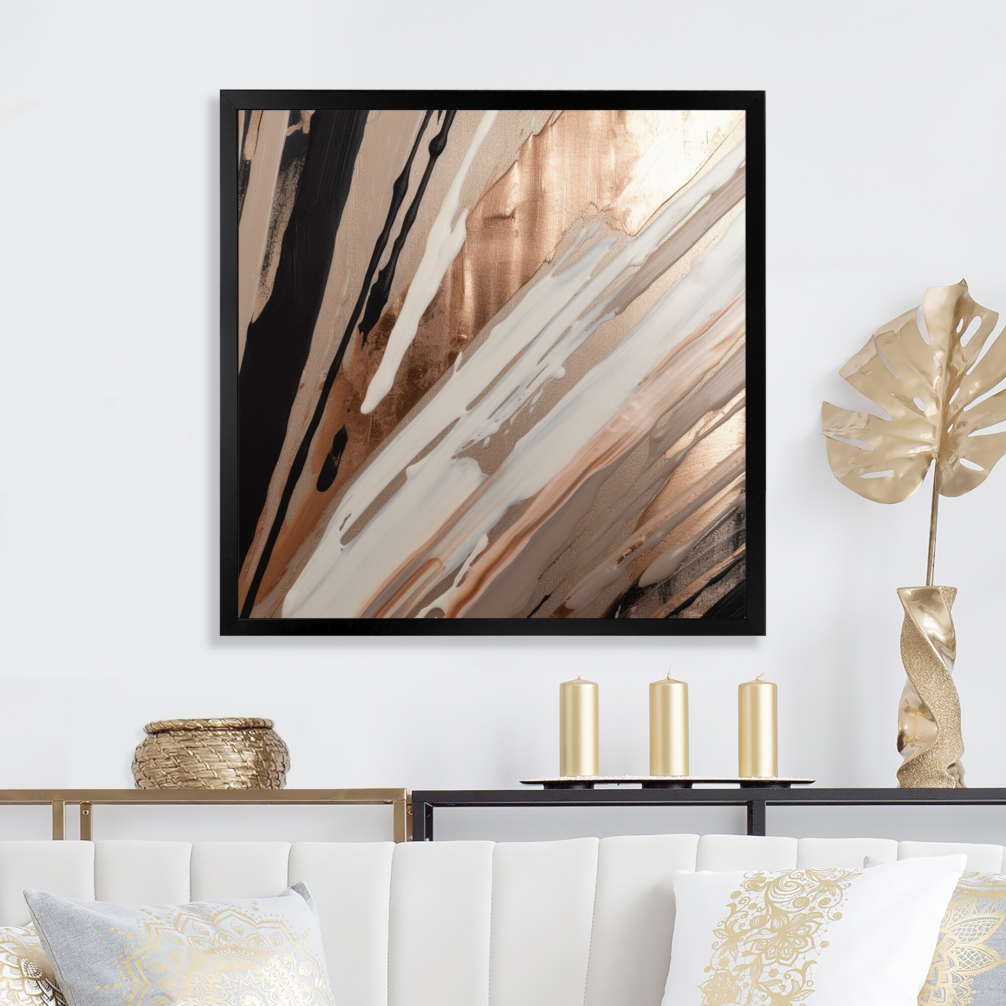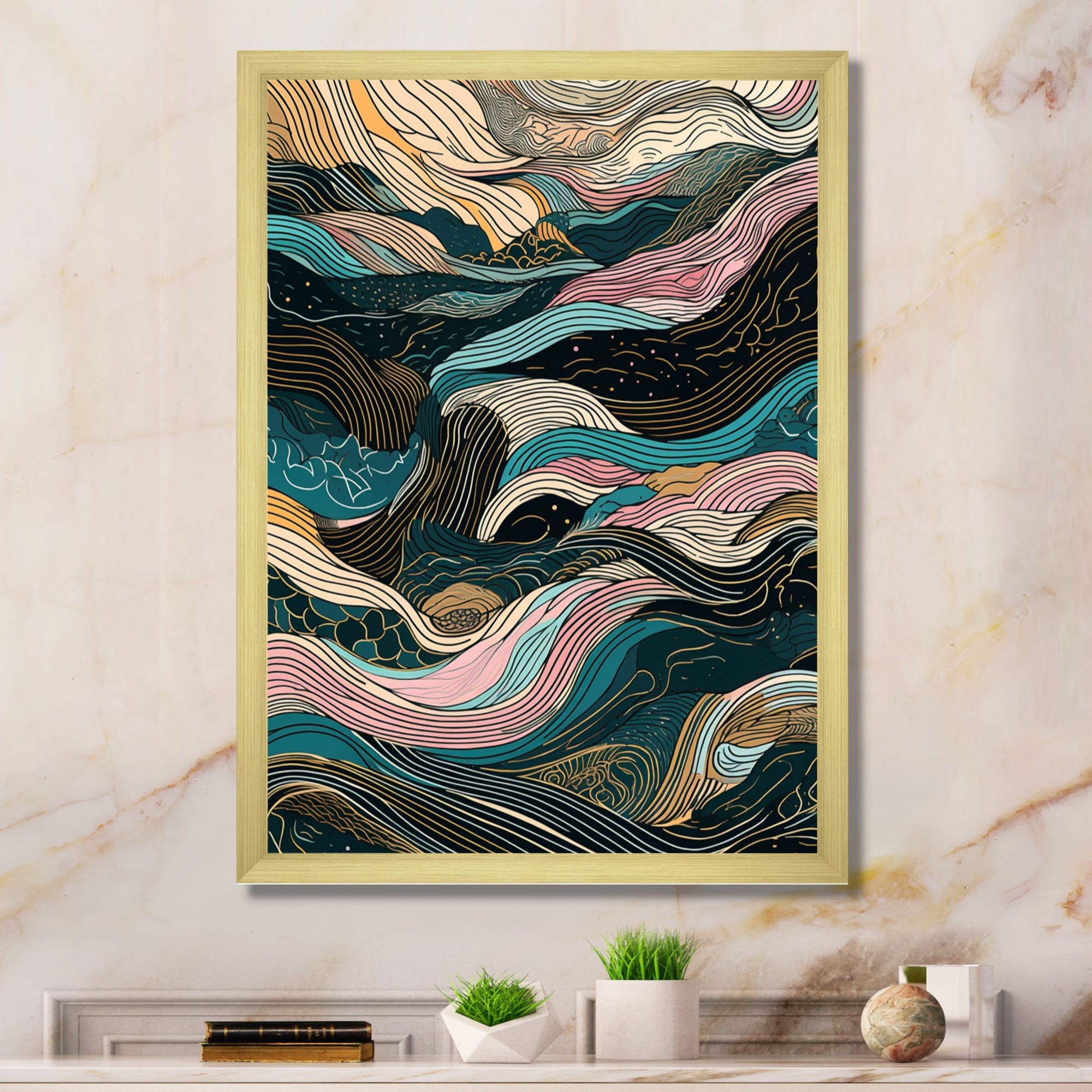 Designart "Rosegold Embracing Essence of Lines V" Abstract Marble Framed Wall Art for Living Room