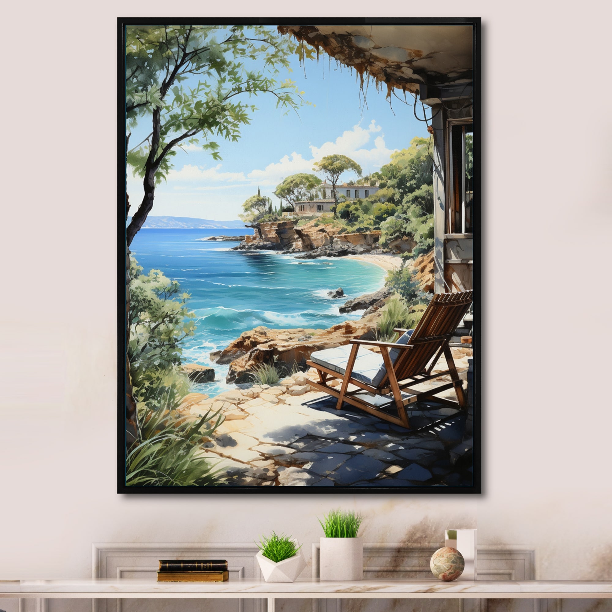 Designart "Dominican Tropical Retreat II" Beach Framed Wall Art Living Room