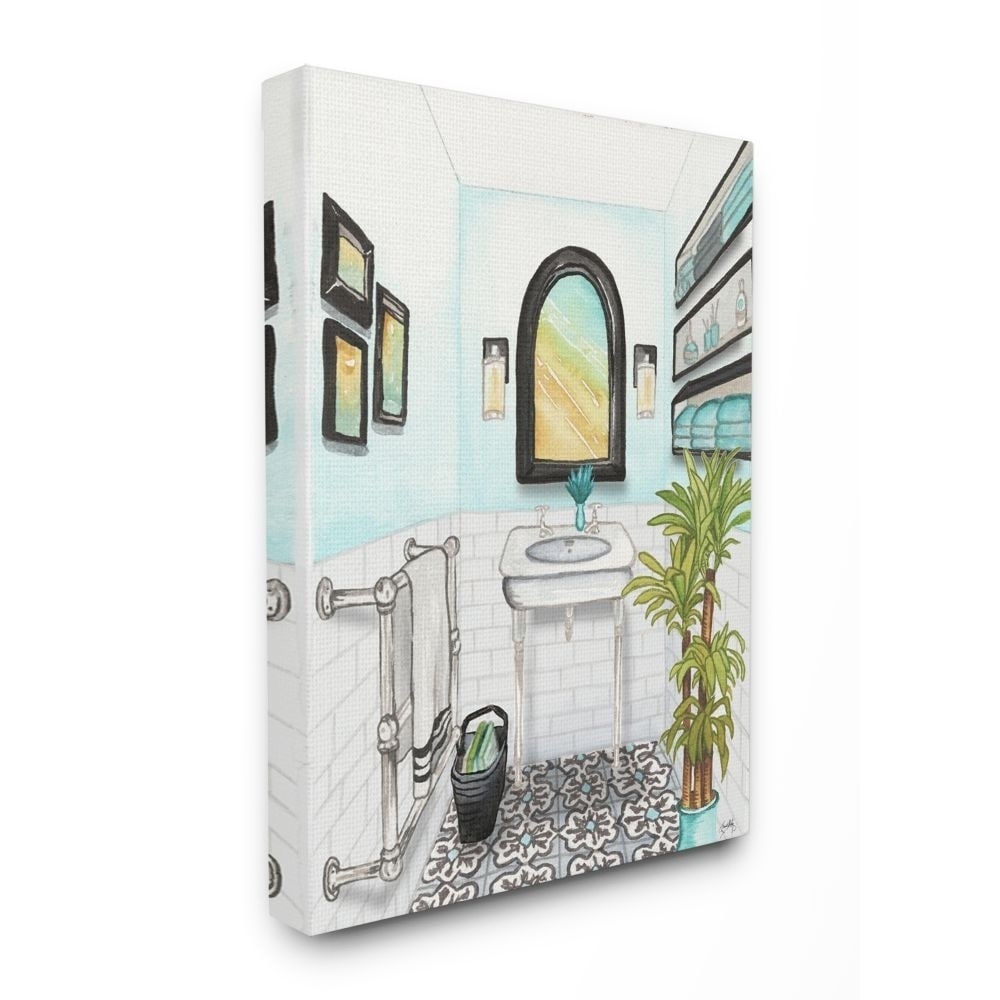 Stupell Bathroom Blue Watercolor Painting,16x20, Proudly Made in USA - Multi-Color