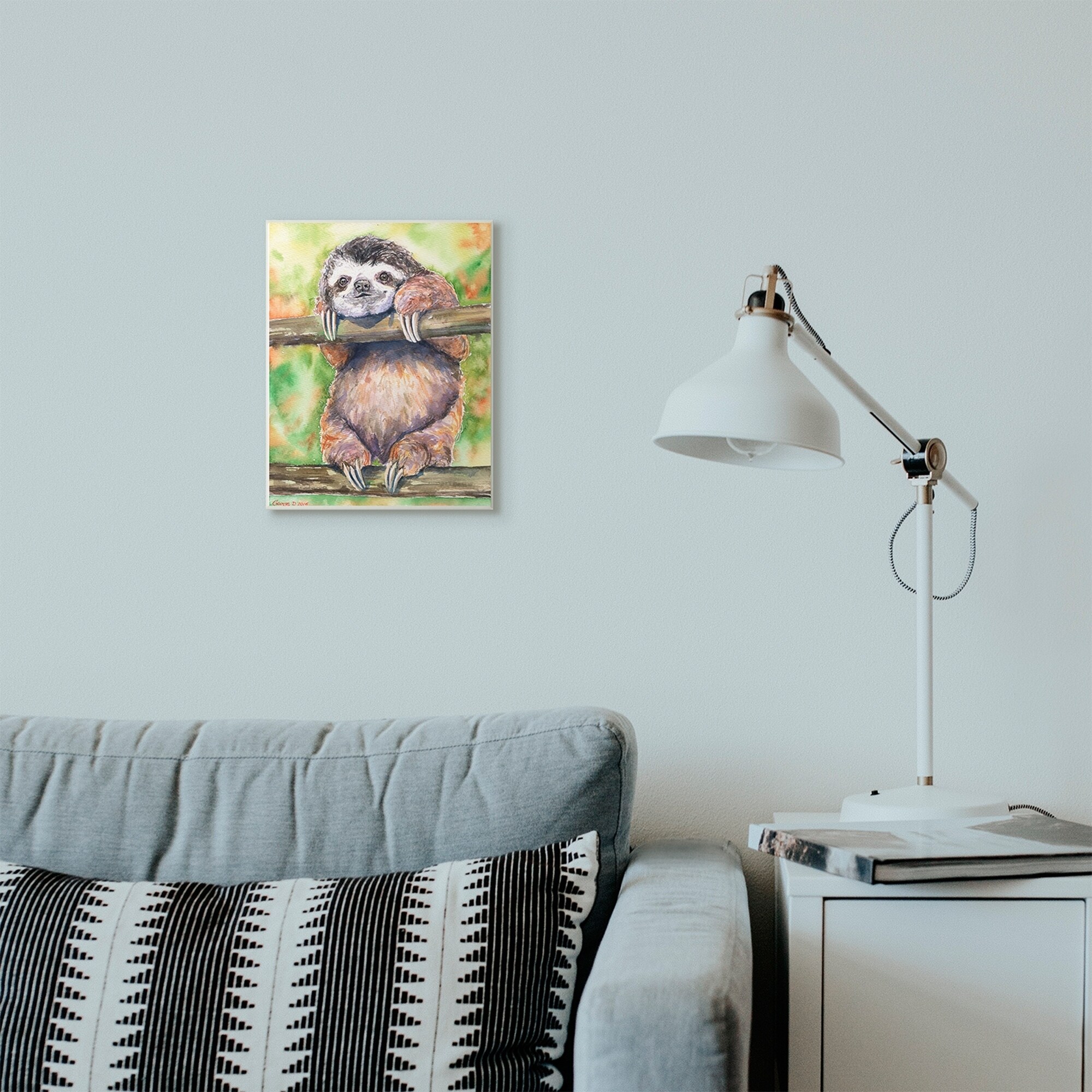 Stupell Industries Sloth Animal Green Orange Watercolor Painting,10x15, Proudly Made in USA