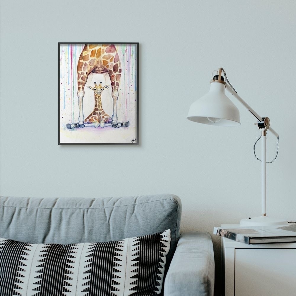 Stupell Industries Colorful Cute Giraffe Family Animal Watercolor Painting Black Framed Wall Art, Proudly Made in USA