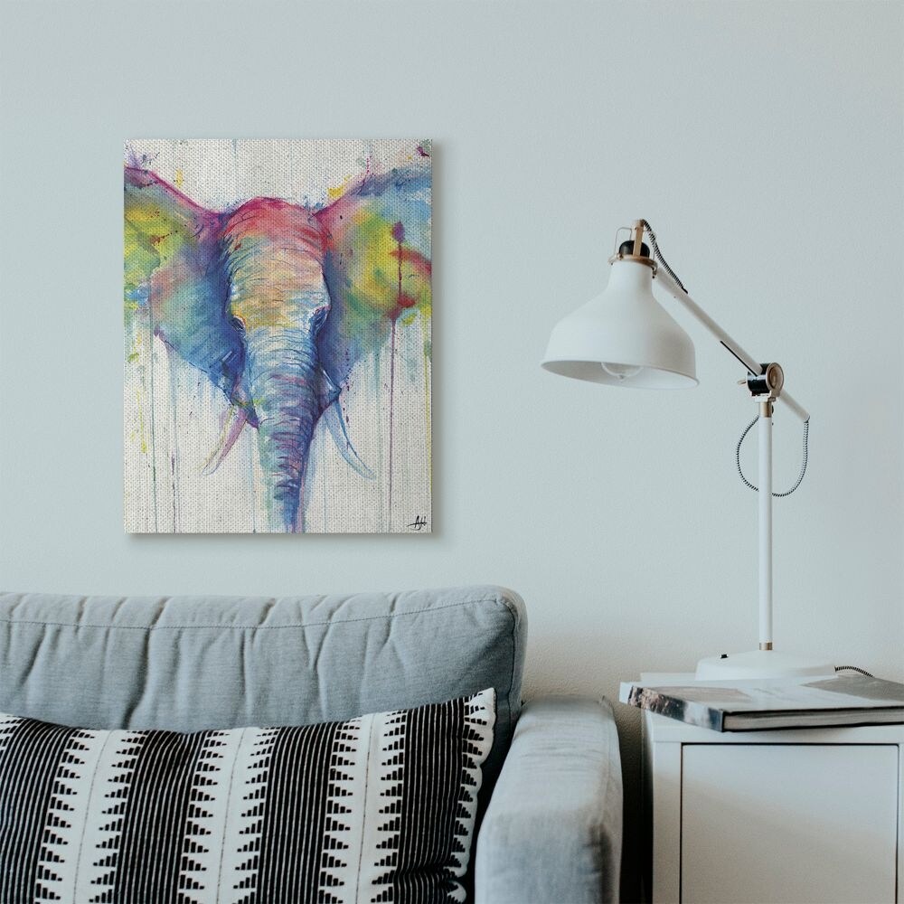 Stupell Industries Colorful Abstract Elephant Portrait Animal Watercolor Painting Canvas Wall Art, Proudly Made in USA