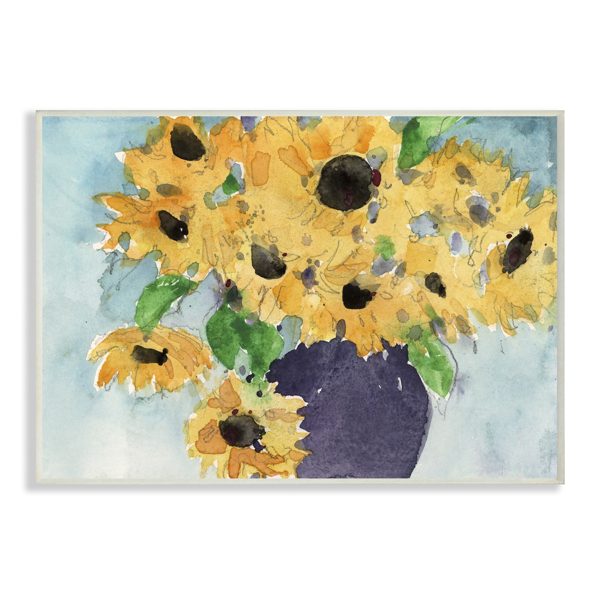 Stupell Sunflowers Yellow Green Watercolor Painting Wood Wall Art