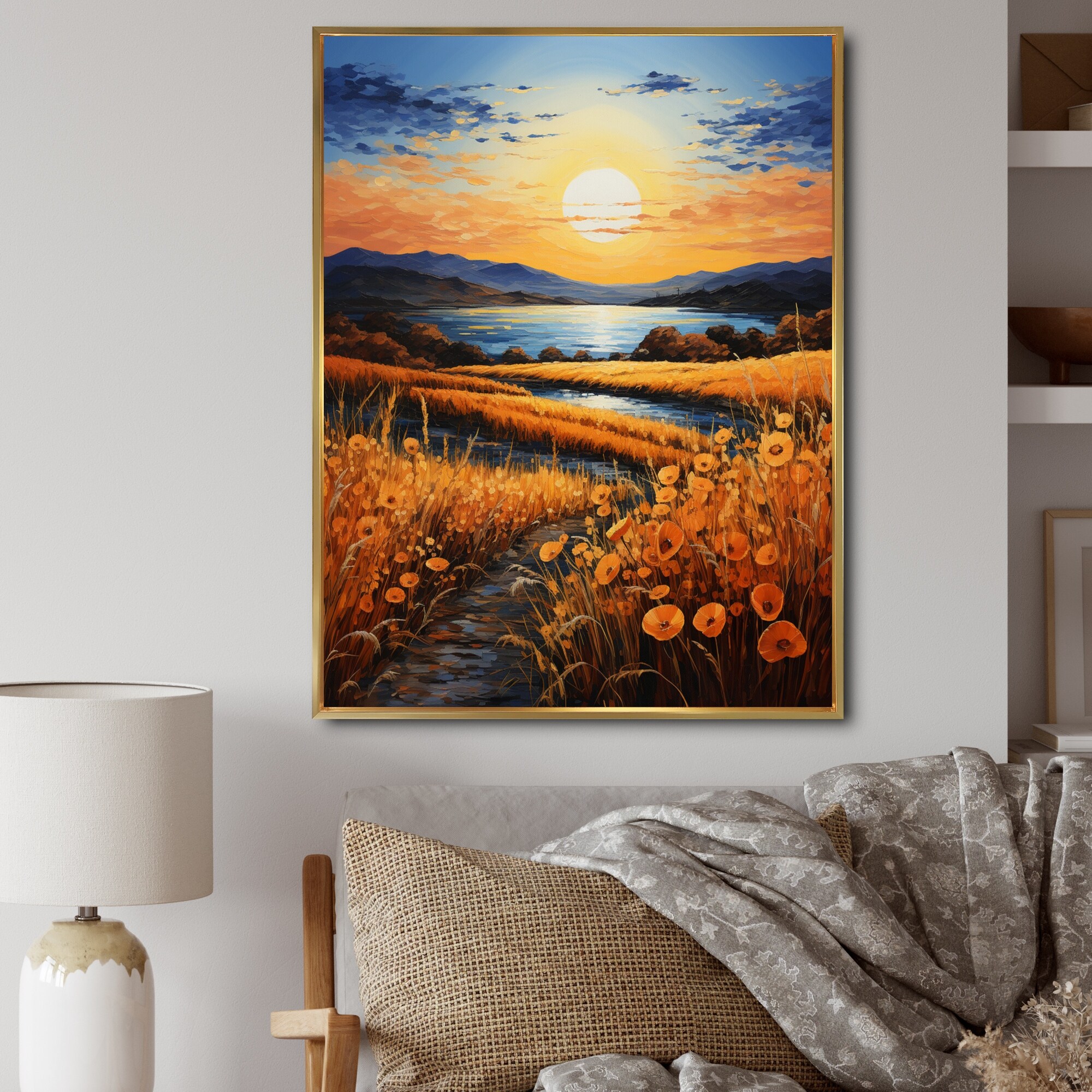 Designart "Vangogh Harvest Time in the Wheat Fields III" Vangogh Framed Wall Decor
