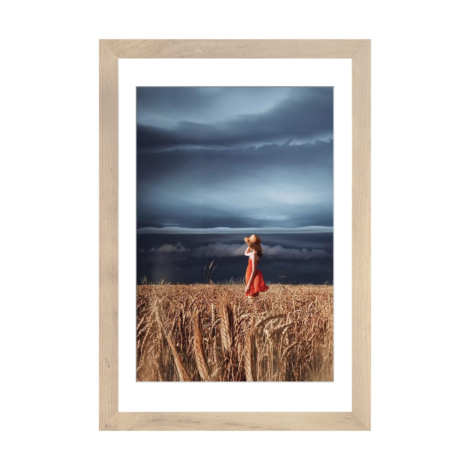Stormy Clouds Over Wheat Field - Landscape Artwork Print on Canvas - Black