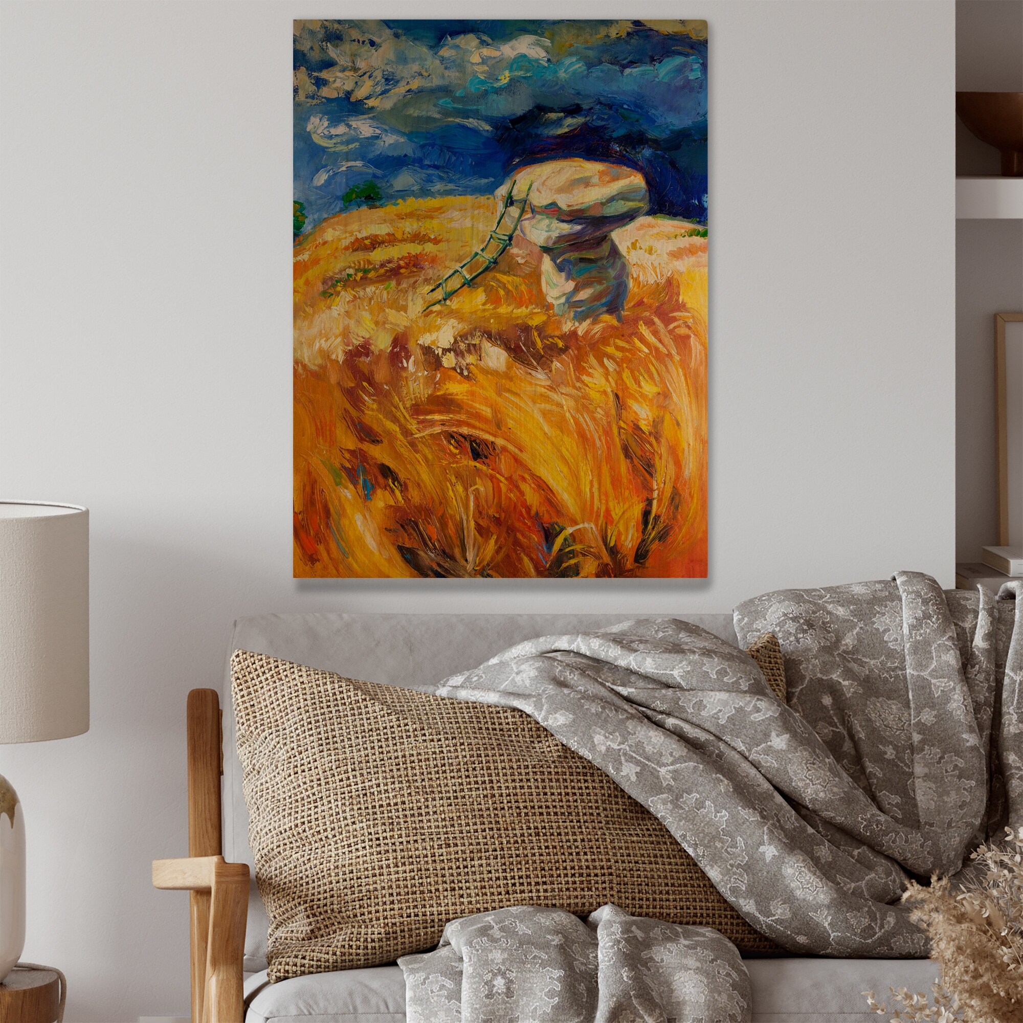 Designart 'Colorful Wheat Fields' Traditional Wood Wall Art Décor - Natural Pine Wood