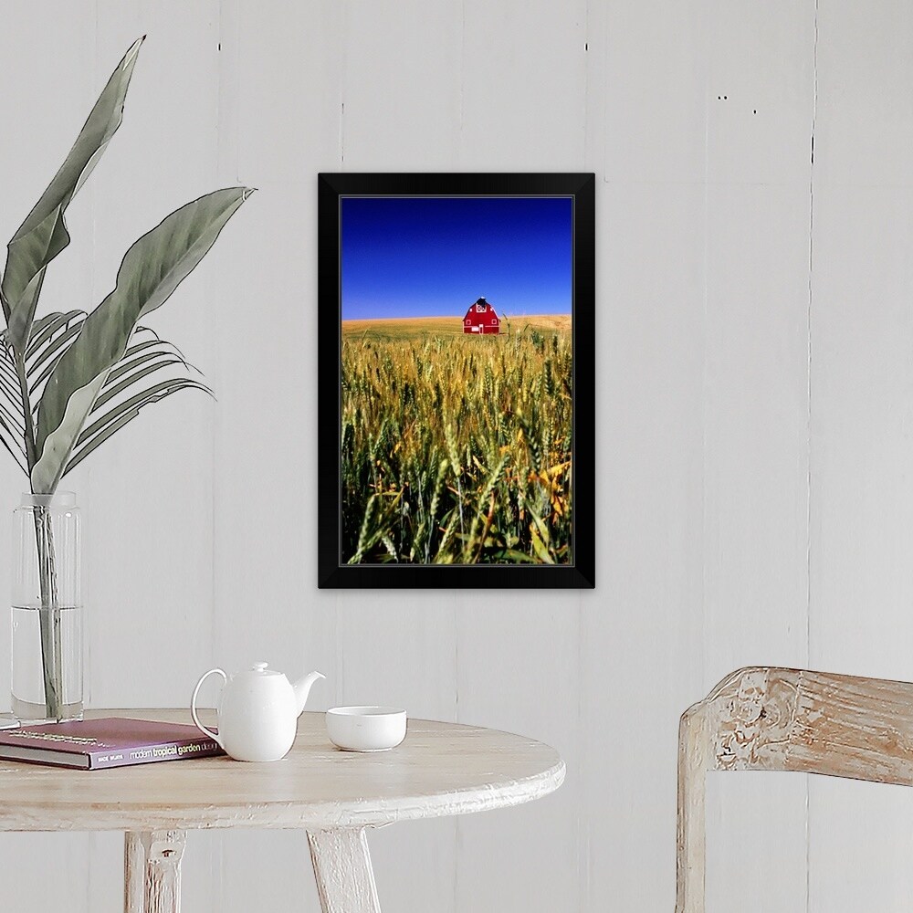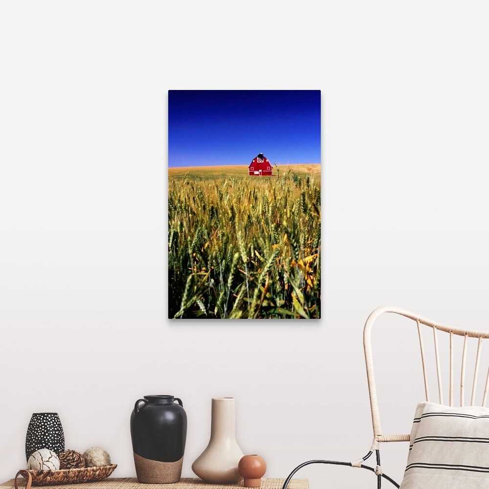 "Red barn in wheat field" Canvas Wall Art