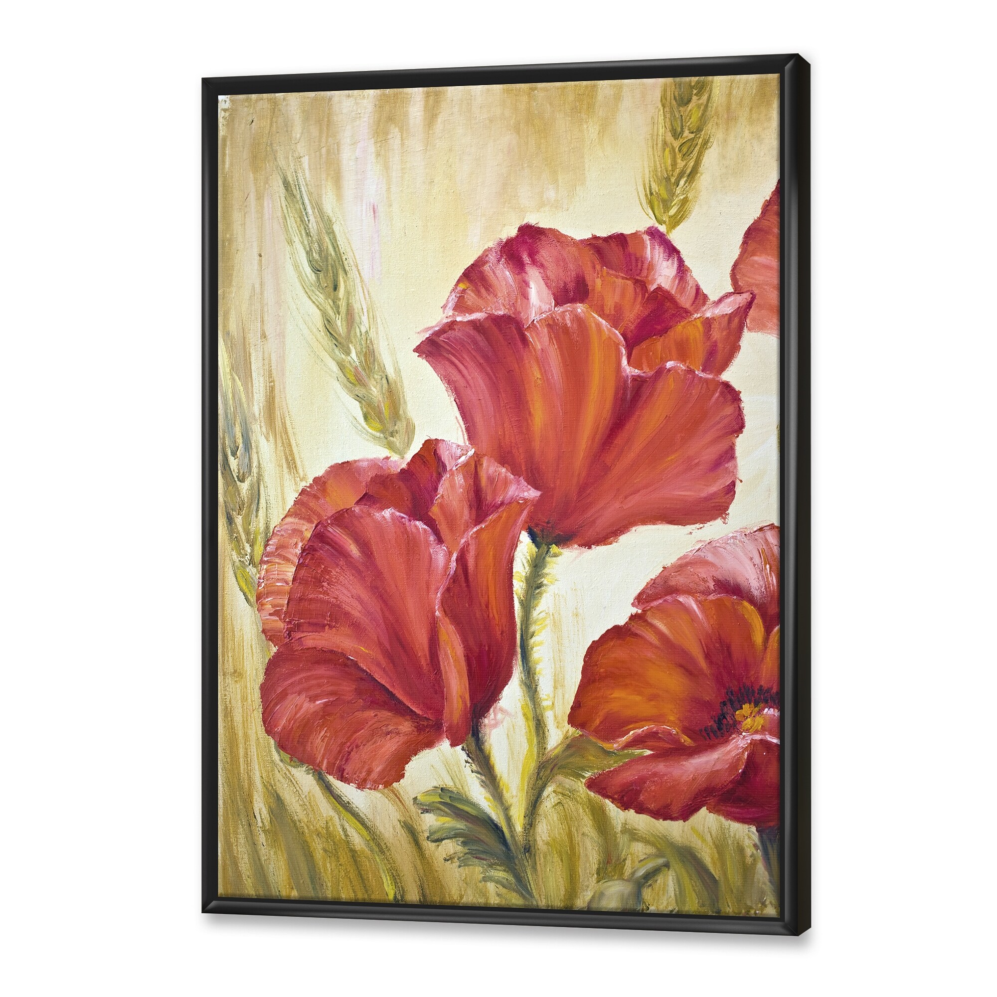 Designart "Blossoming Poppies in Wheat Fields II" Traditional Framed Canvas Wall Art Print