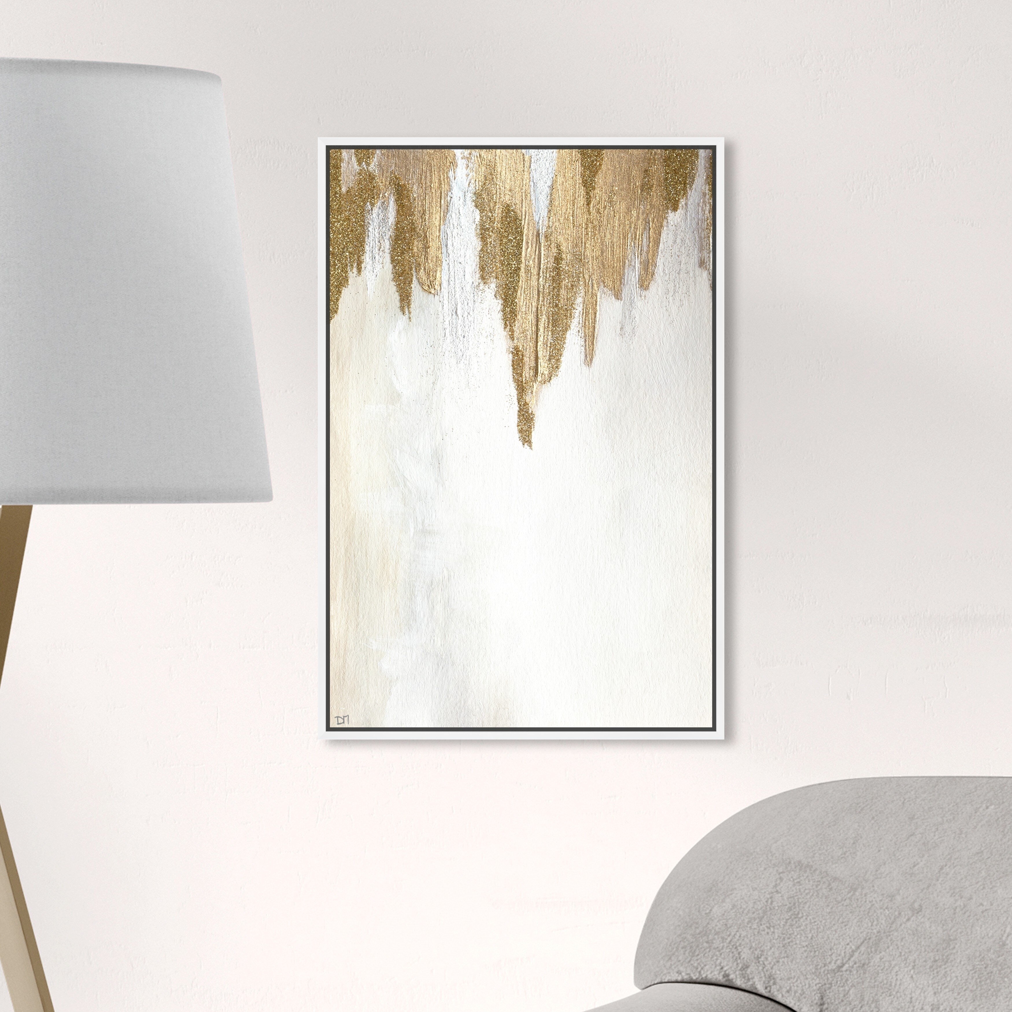 Oliver Gal Abstract Wall Art Framed Canvas Prints 'Very Golden' Paint - Gold, White