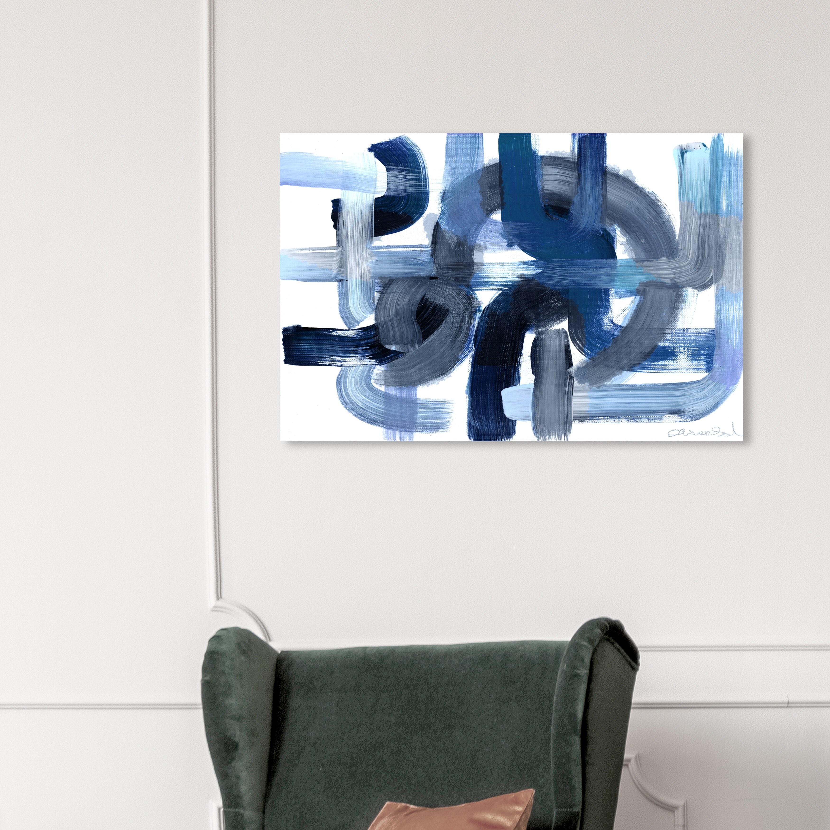 Oliver Gal 'Hanging Out' Abstract Wall Art Framed Canvas Print Paint - Blue, White
