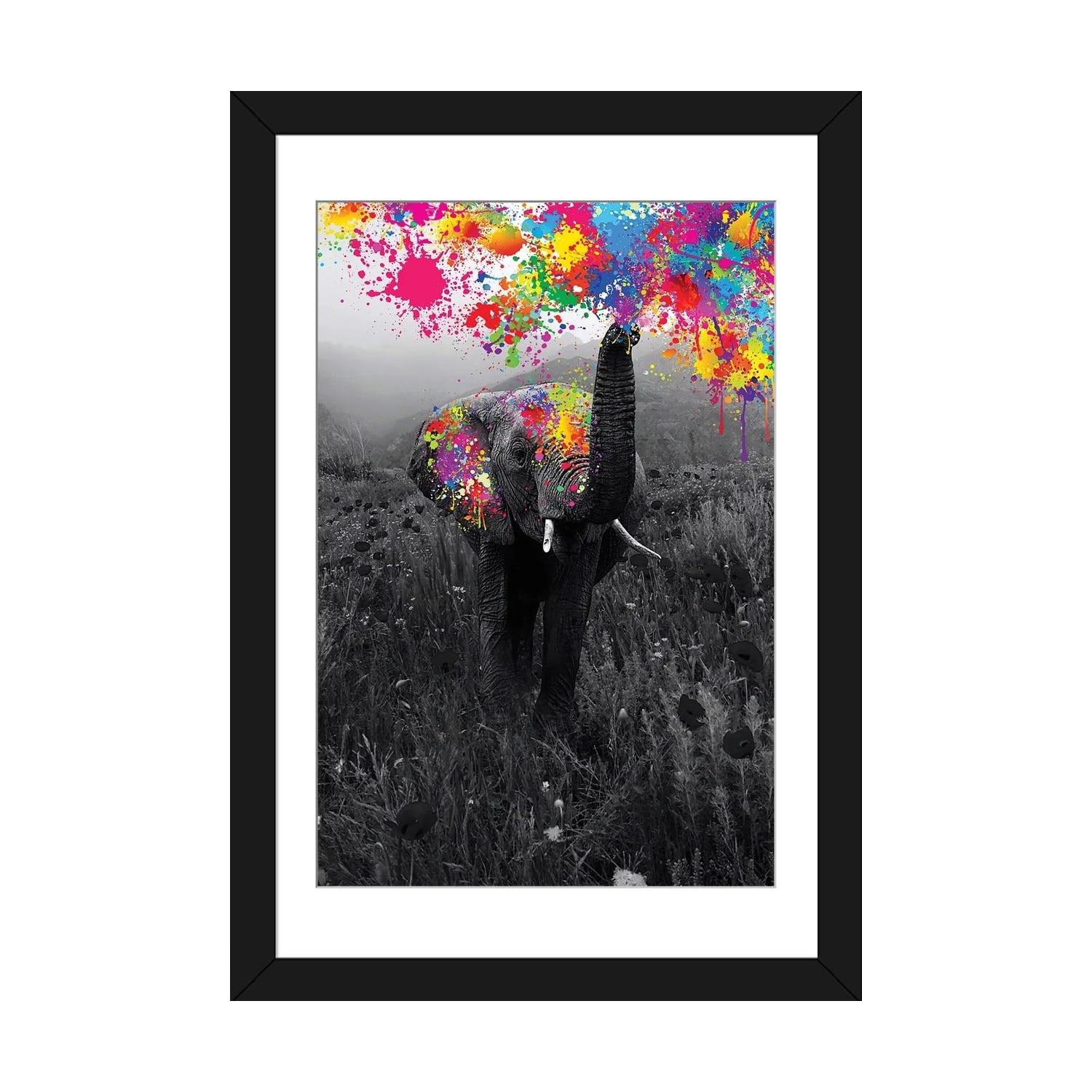 iCanvas "Elephant Playing With Paint in Black And White Nature" by GEN Z PFA