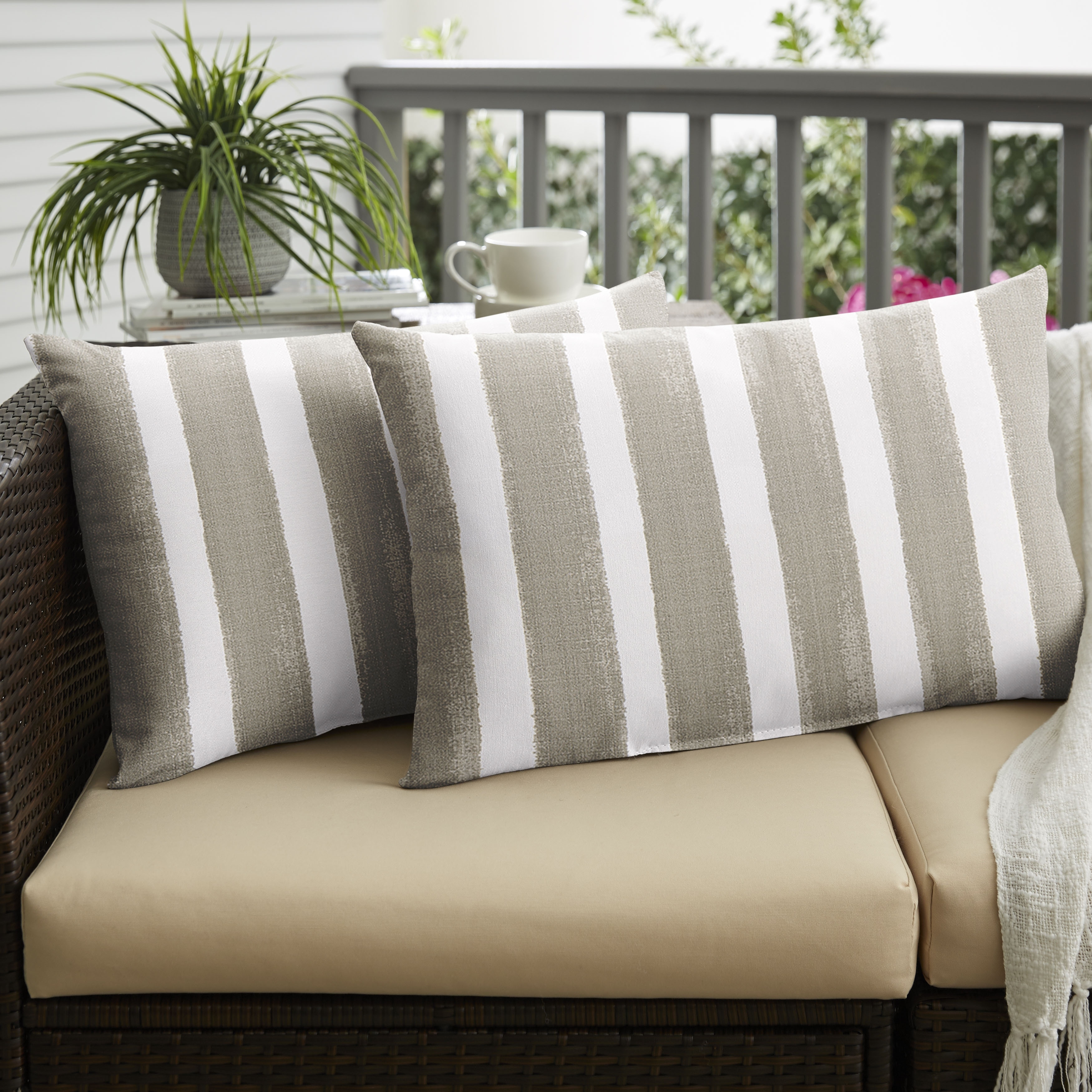 Humble + Haute Tan and White Stripe Indoor/Outdoor Corded Lumbar Pillows (Set of 2)