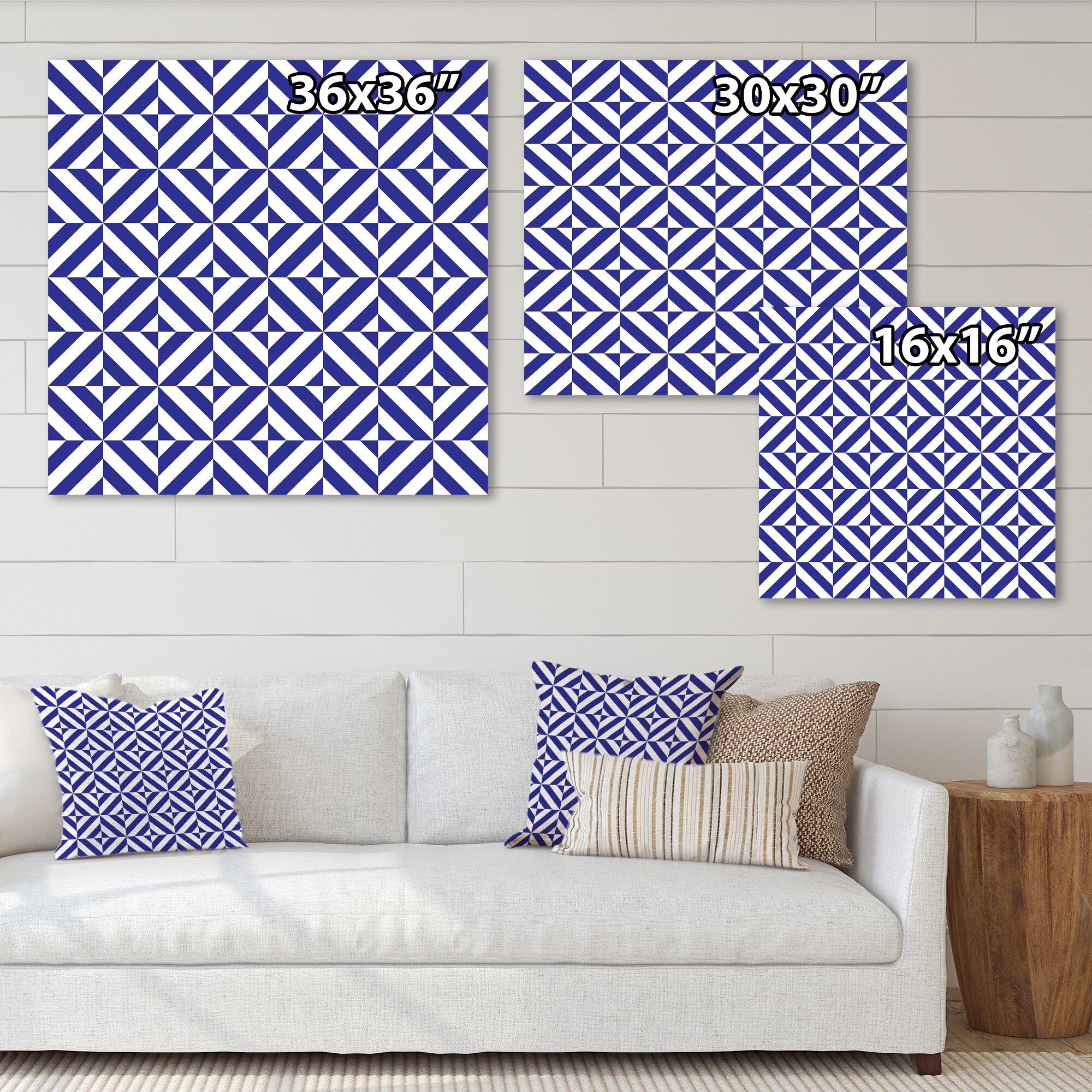 Designart "Blue And White Striped Geometrics" Patterned Canvas Wall Art Print