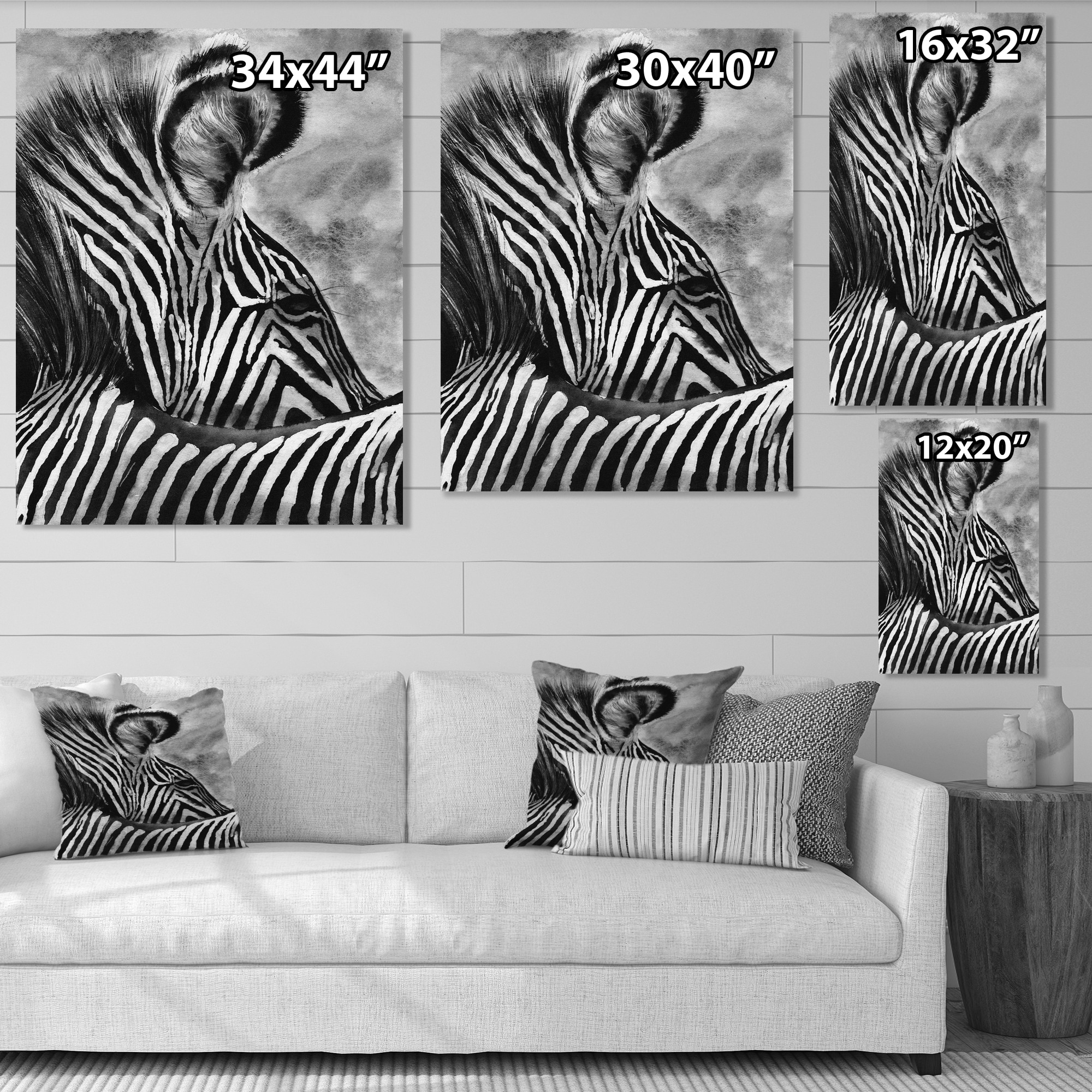 Designart "Zebra With Contrasting Black And White Stripes IV" Traditional Canvas Wall Art Print