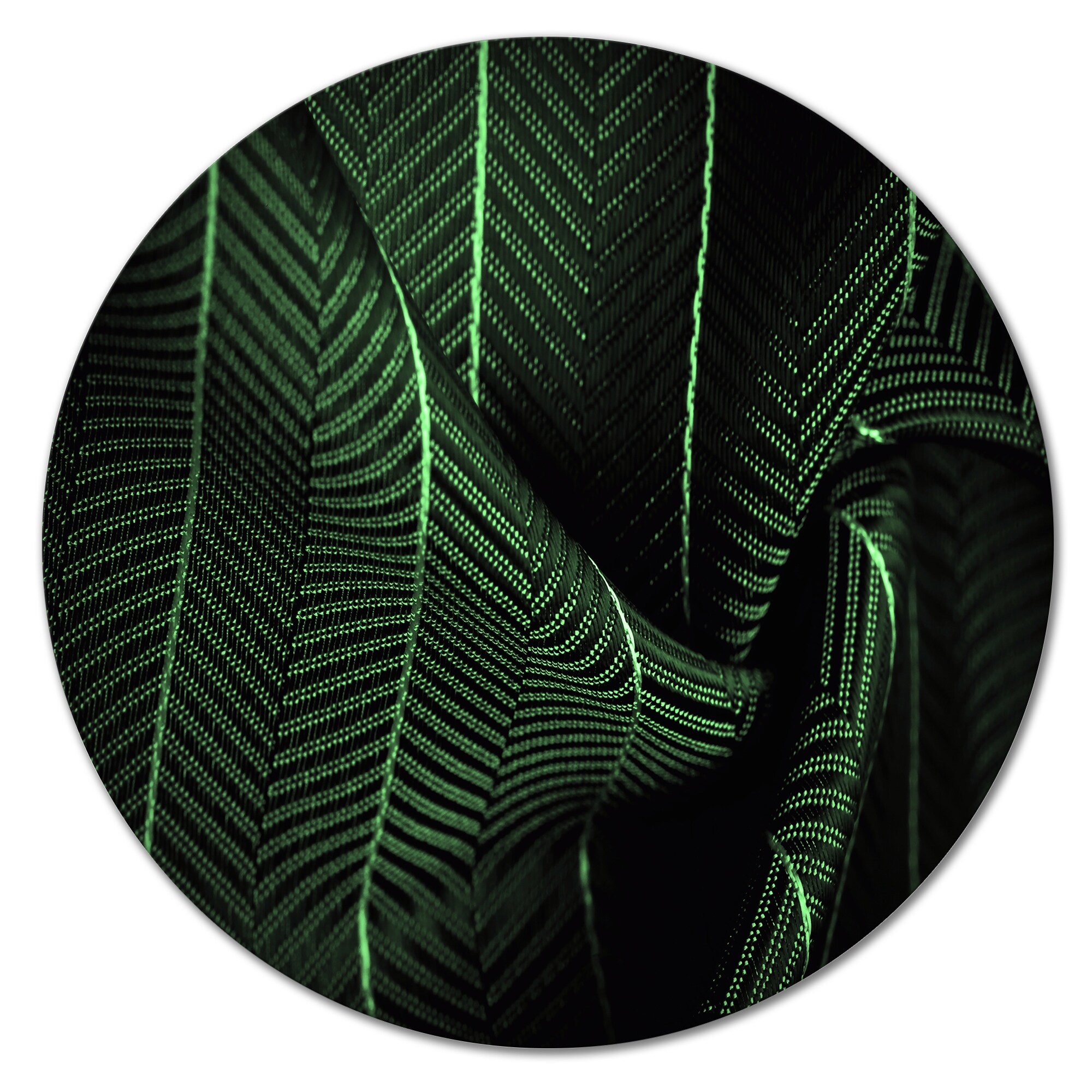 Designart 'Deep Green Silk Fabric With A Thin White Stripe II' Patterned Metal Circle Wall Art