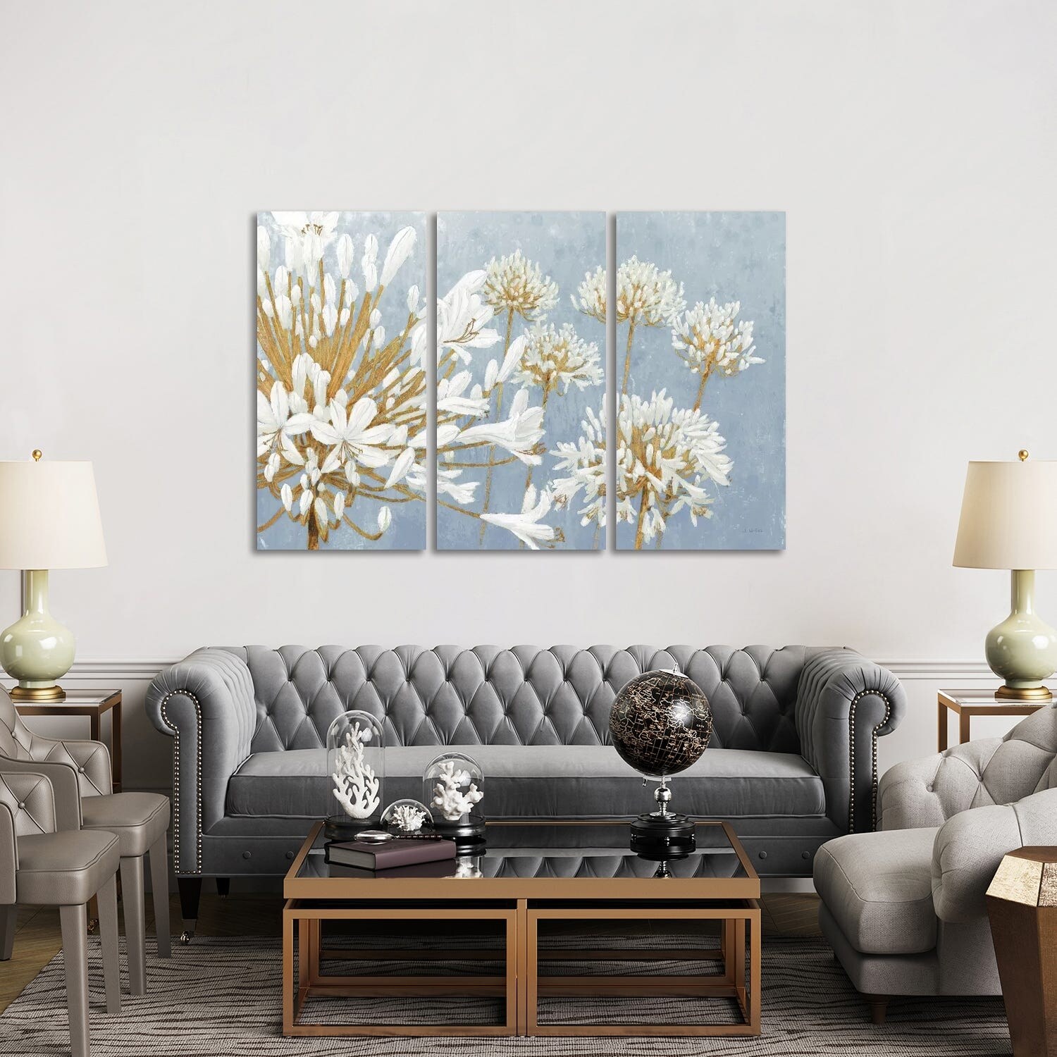 iCanvas "Golden Spring Blue Gray" by James Wiens 3-Piece Canvas Wall Art Set