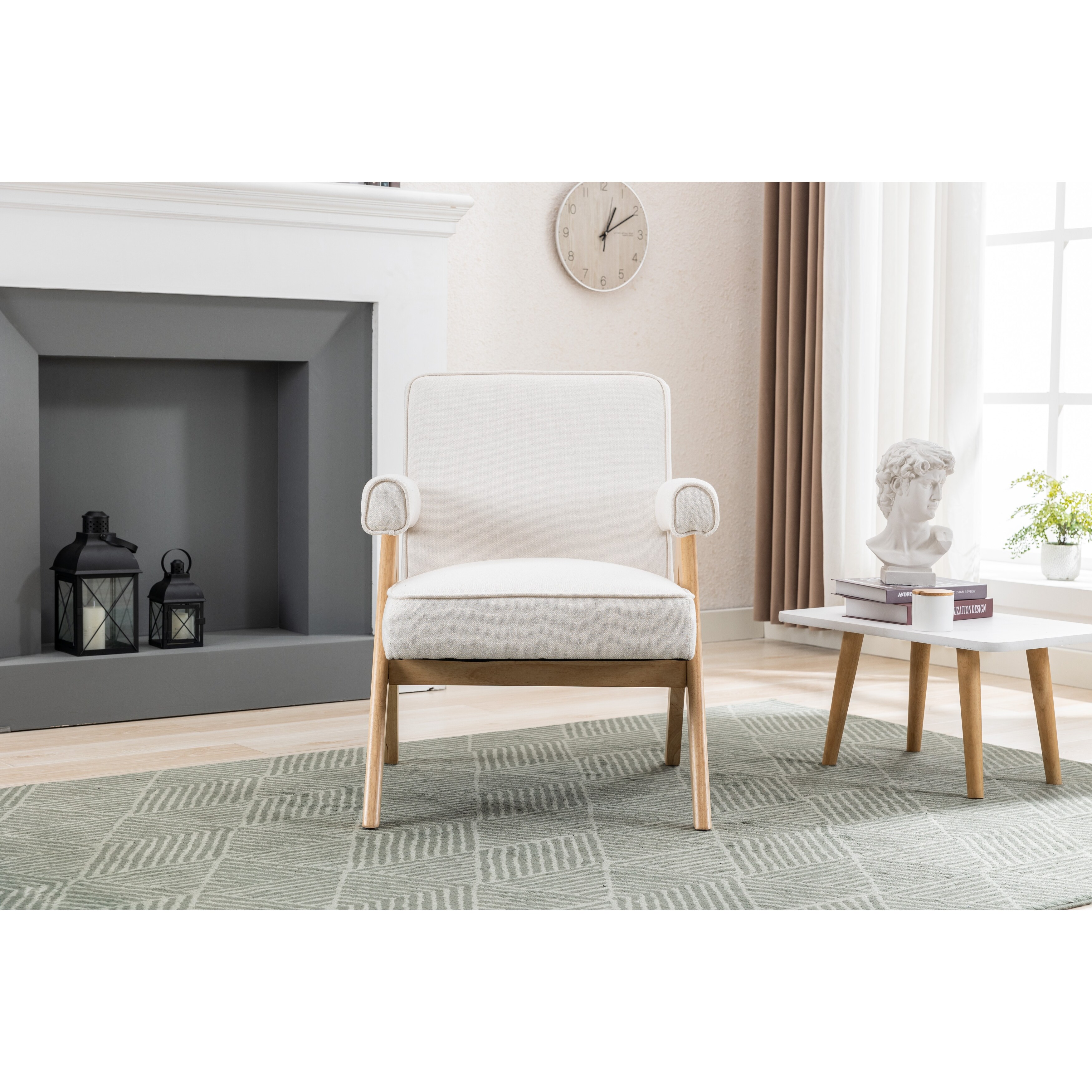Leisure Solid Wood Armchairs, Modern Accent Chair, Beige