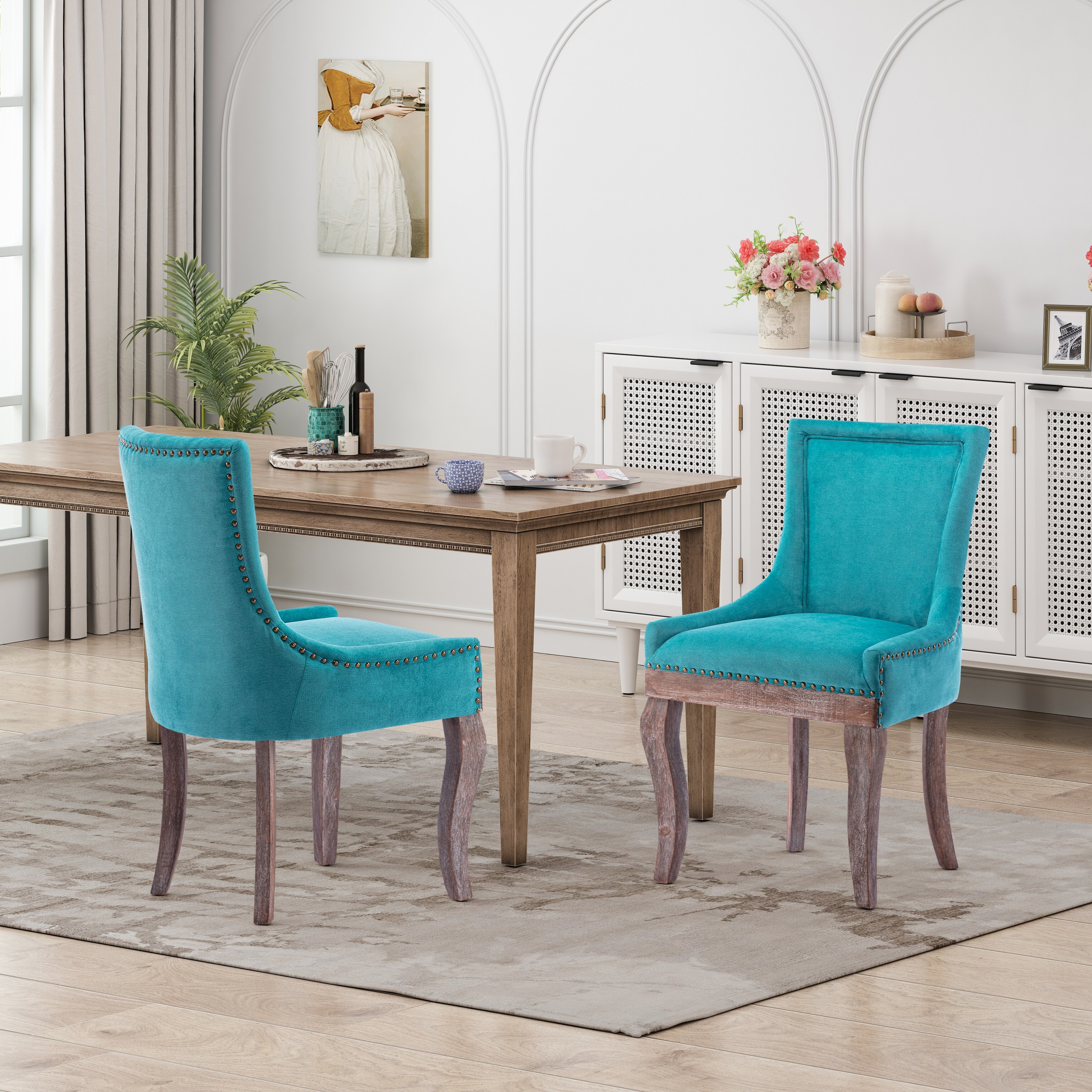 Set of 2 Velvet Upholstered Dining Chair with Wood Legs