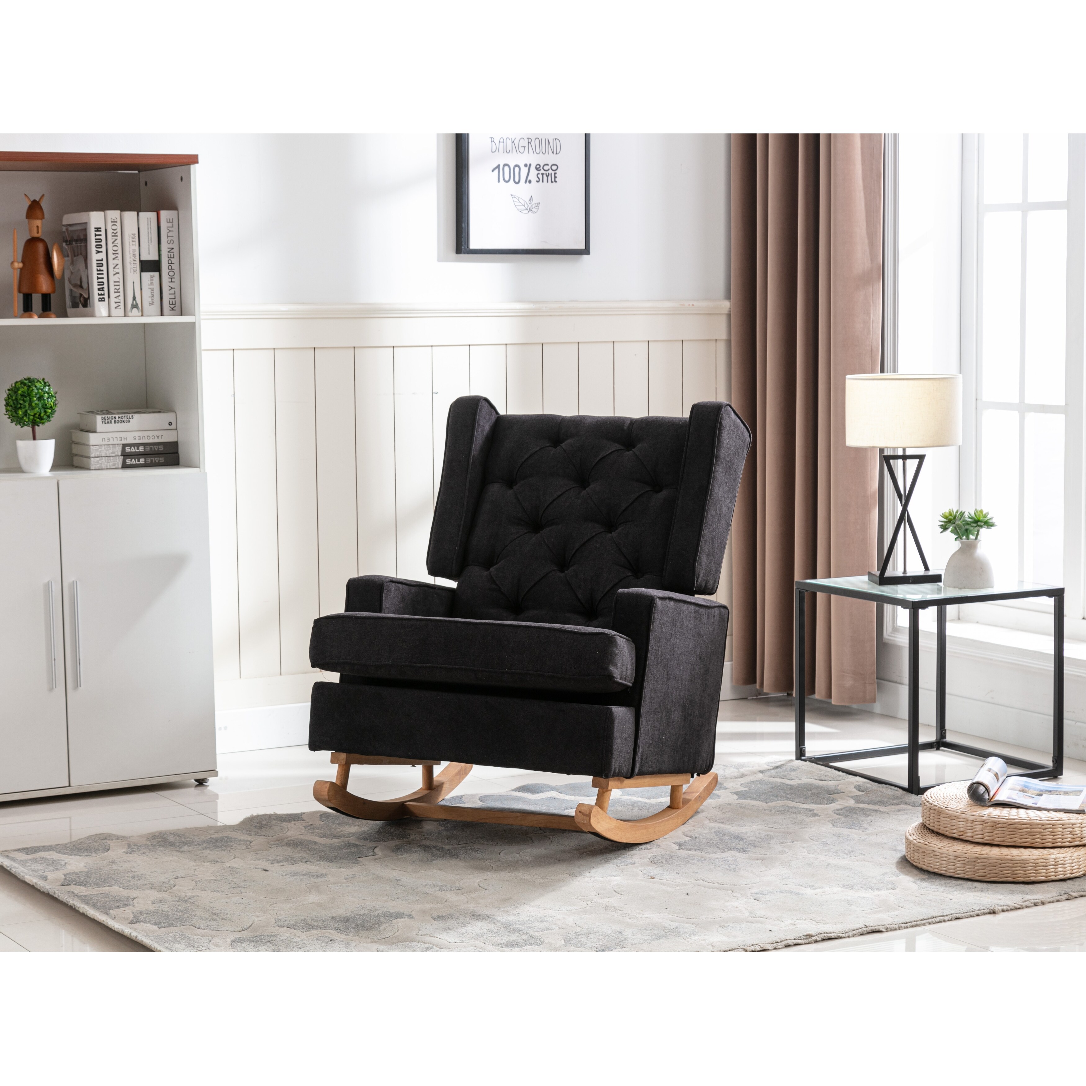 40.16" W Polyester Fabric Upholstered Rocking Chairs with Button Tufted Back & Padded Seat, Sturdy Metal Base & Wood Legs
