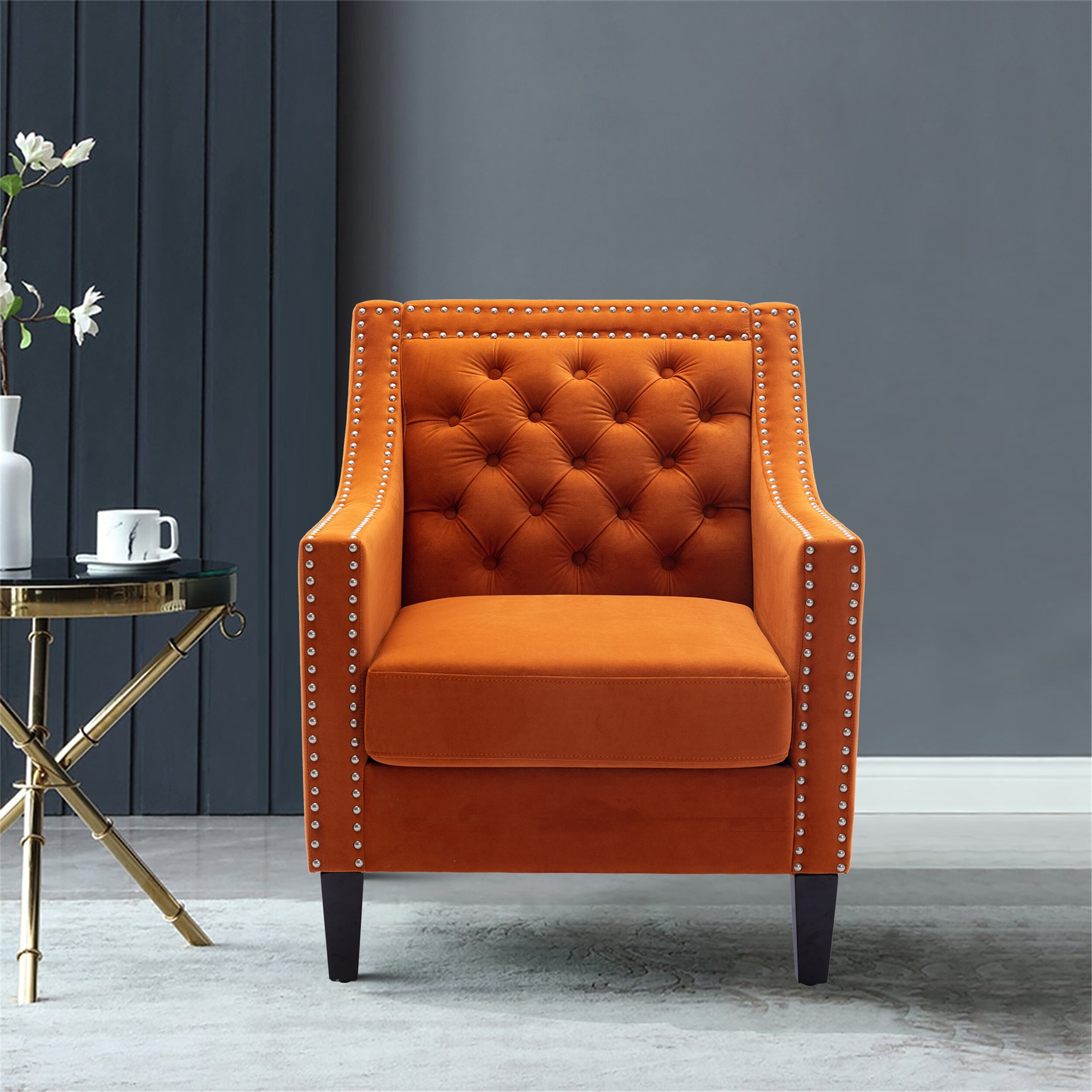 Accent Armchair Living Room Chair with Nailheads and Solid Wood Legs