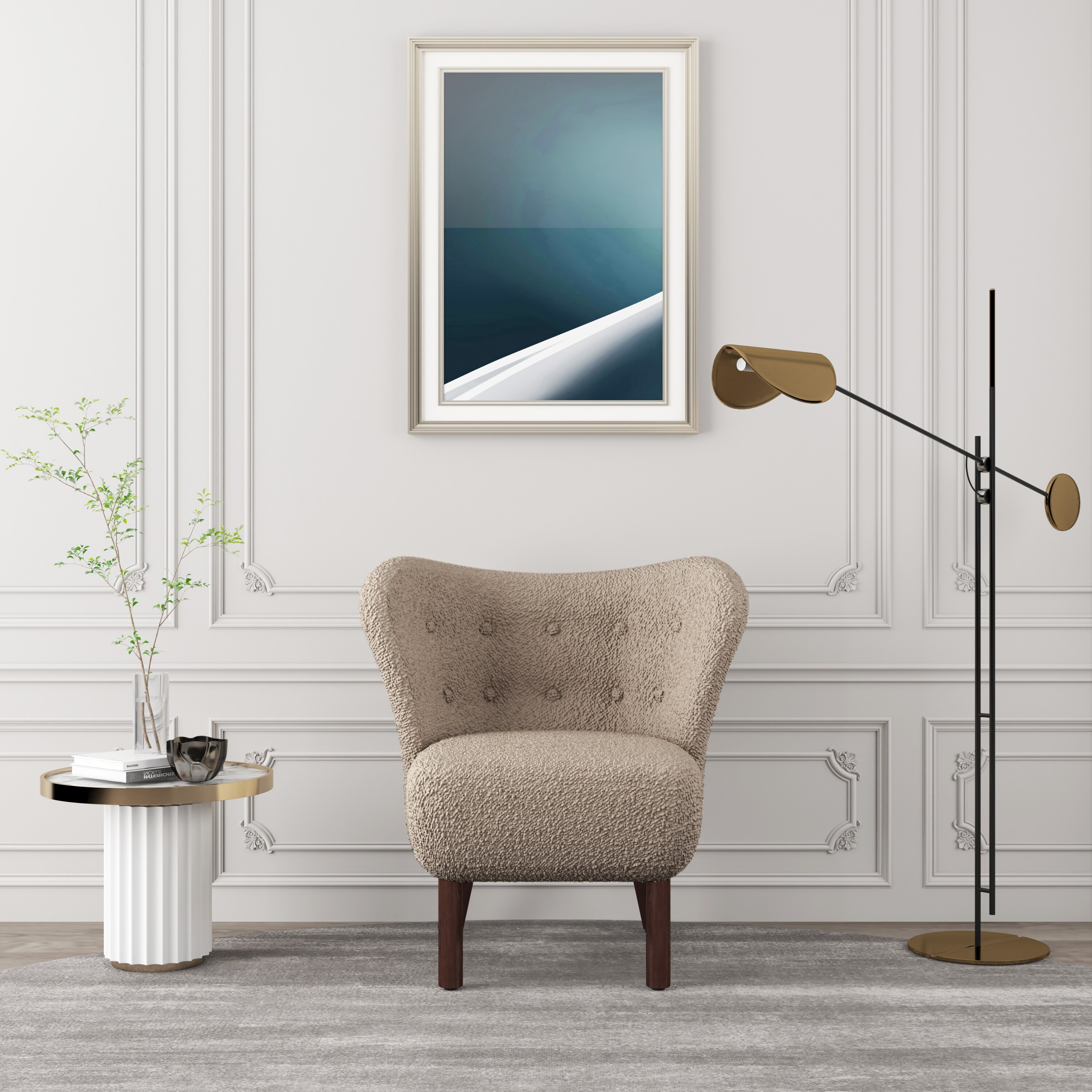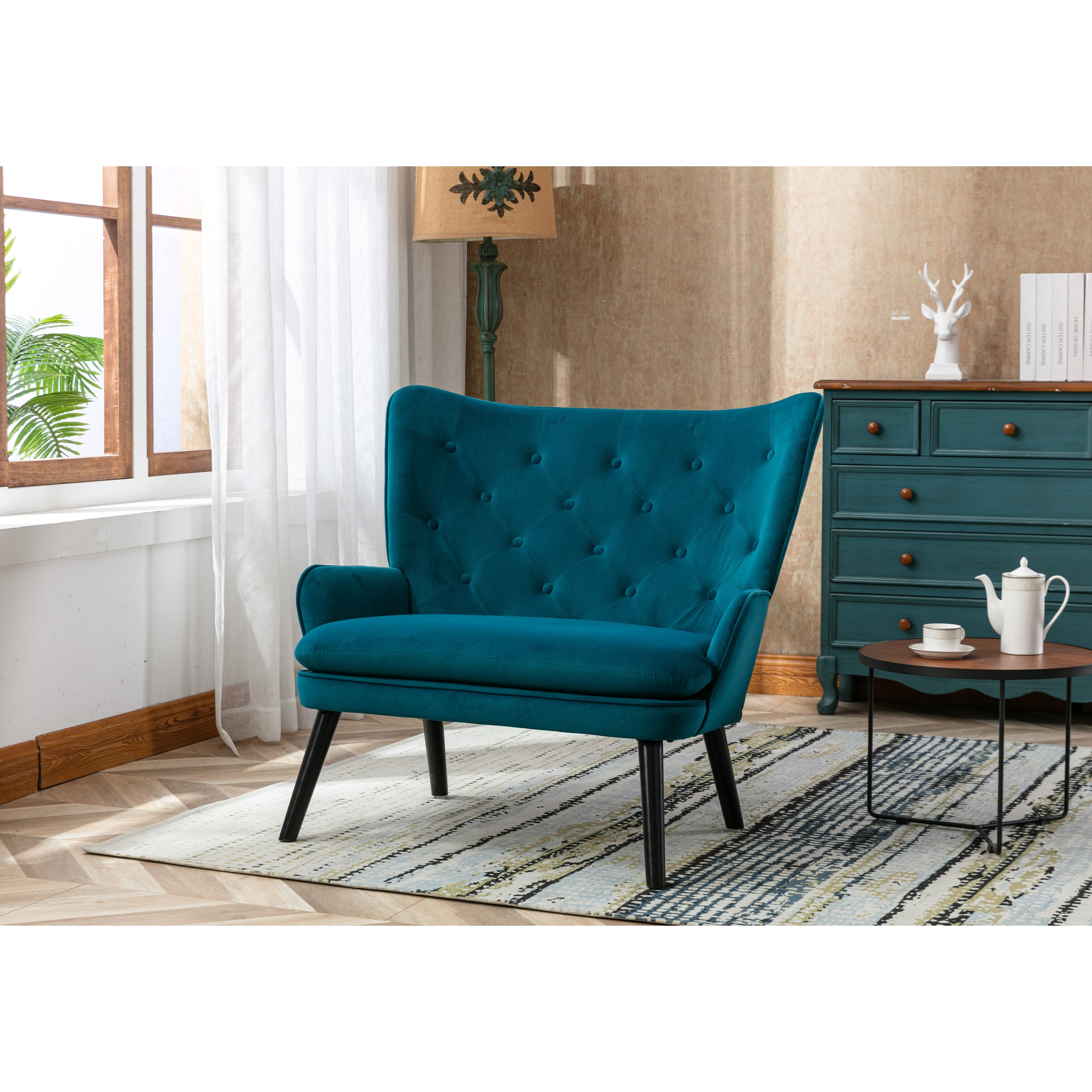 Modern Wingback Tufted Accent Chair with Solid Wood Legs