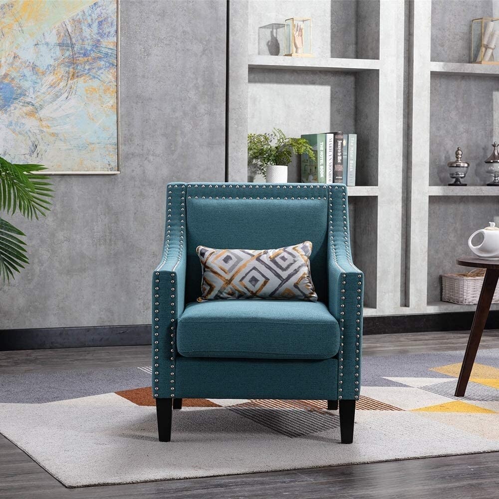 Accent Armchair Living Room Chair with Nailheads & Solid Wood Legs