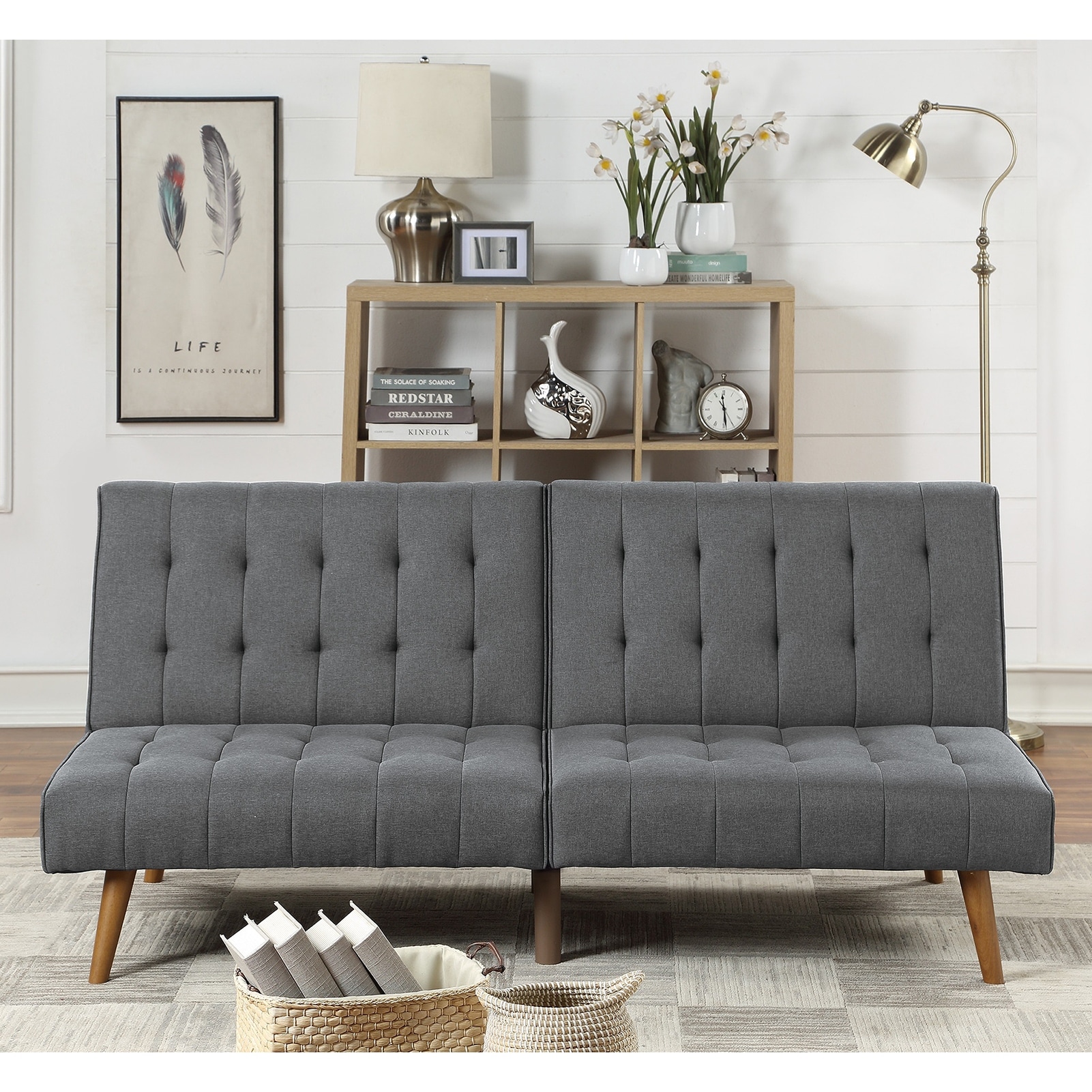 Modern Convertible Polyfiber Plush Tufted Cushion Sofa Wooden Legs
