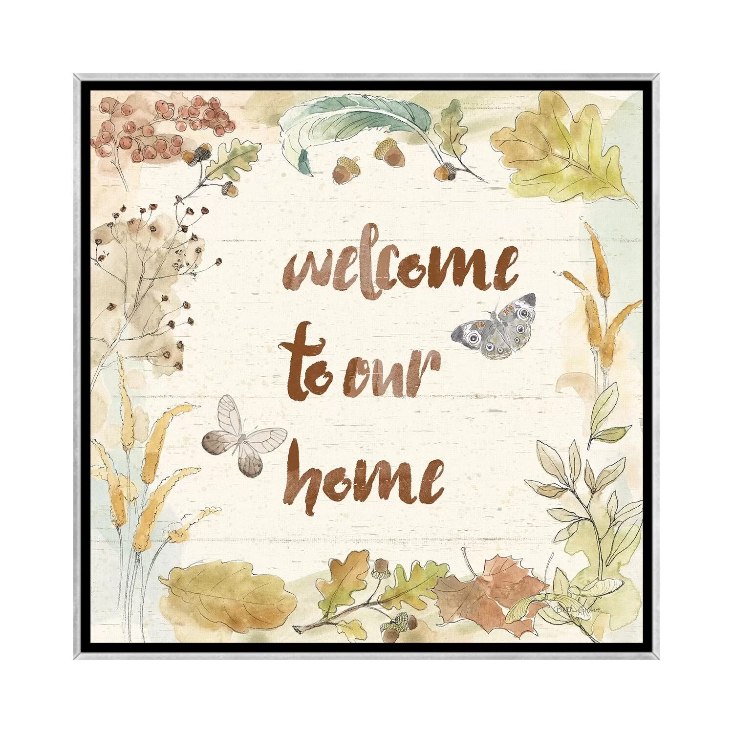 iCanvas "Woodland Wreath VI Home" by Beth Grove Framed