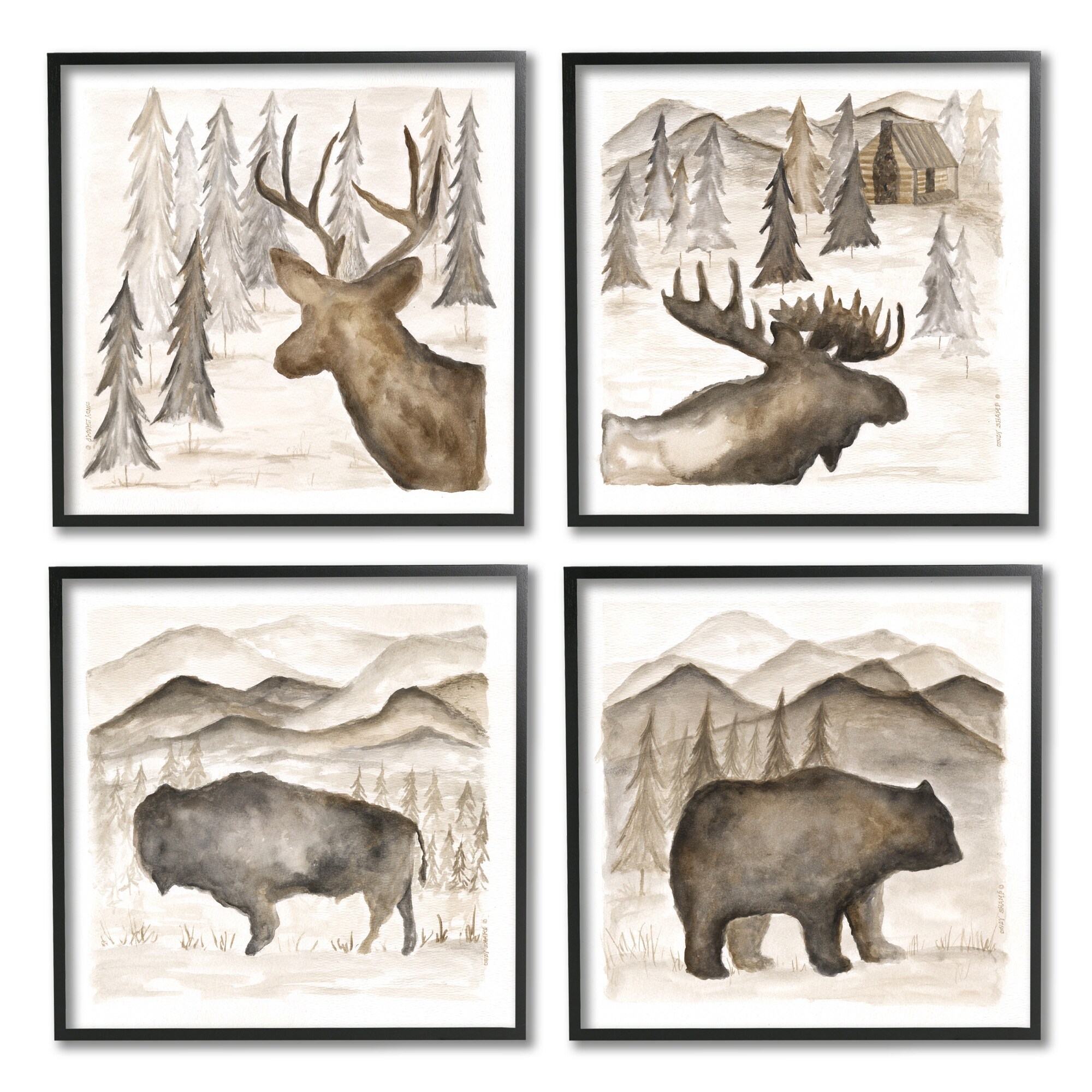 Stupell Industries Rustic Woodland Animals Brown Forest Mountain Landscape 4pc Multi Piece Framed Wall Art Set