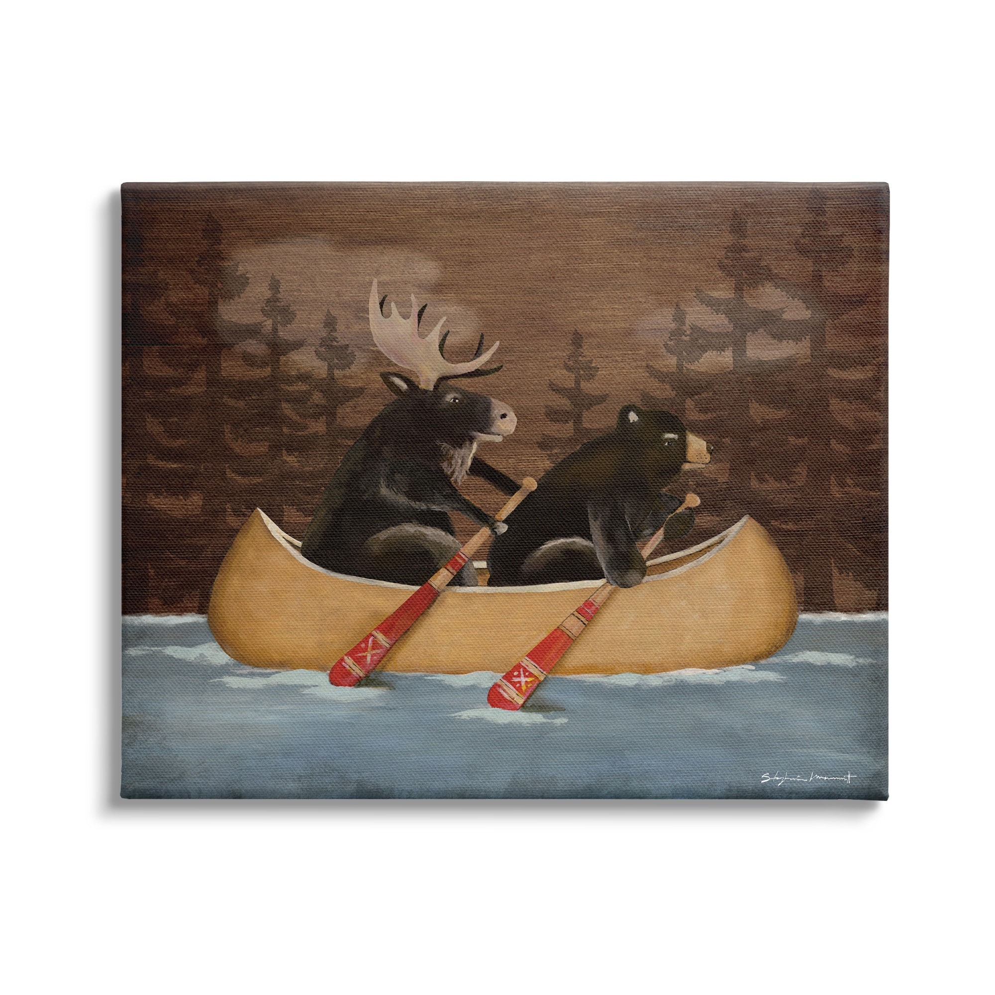 Stupell Industries Canoeing Animals Rustic Woodland Canvas Wall Art by Stephanie Workman Marrott