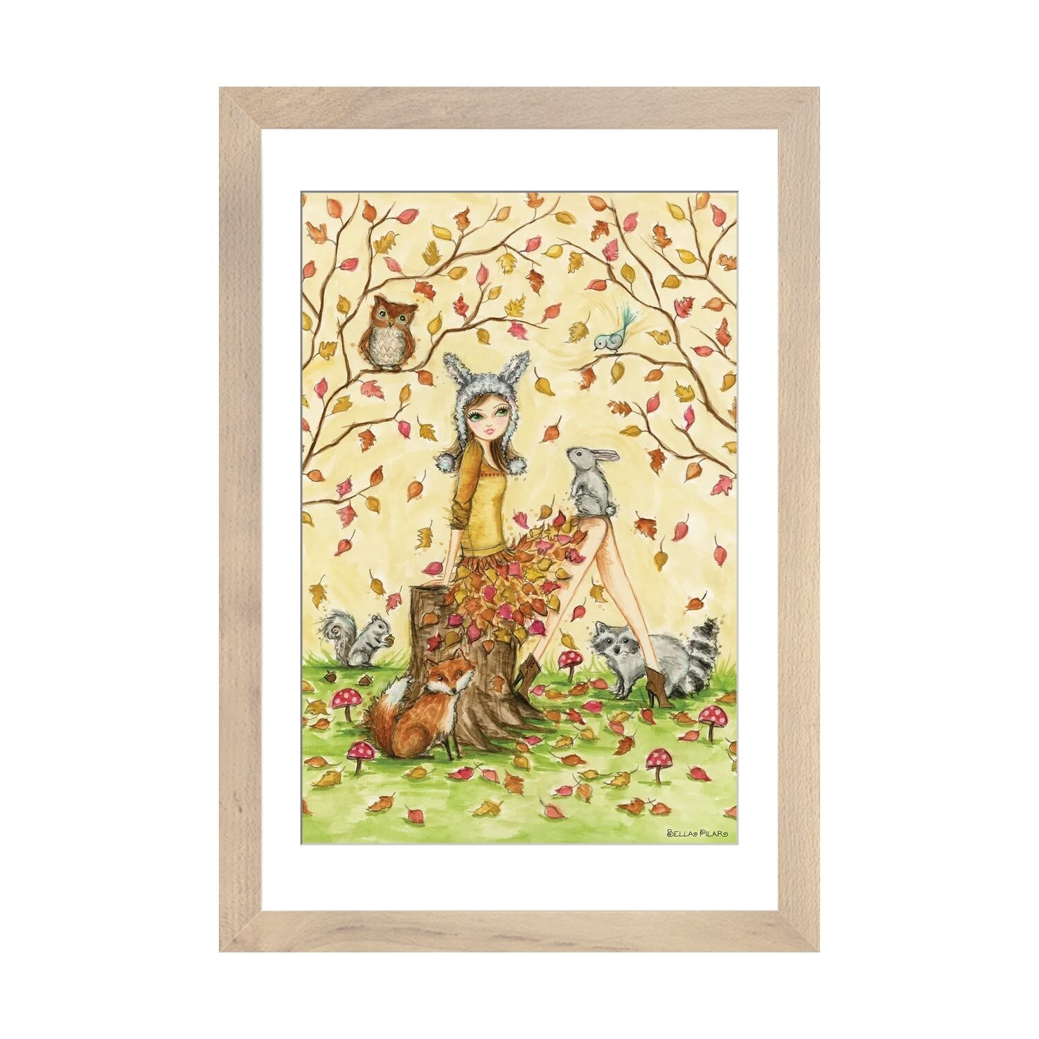 "Woodland Littles 2" - Fox - Individual Framed Print with Mat - Black - 16" x 20"