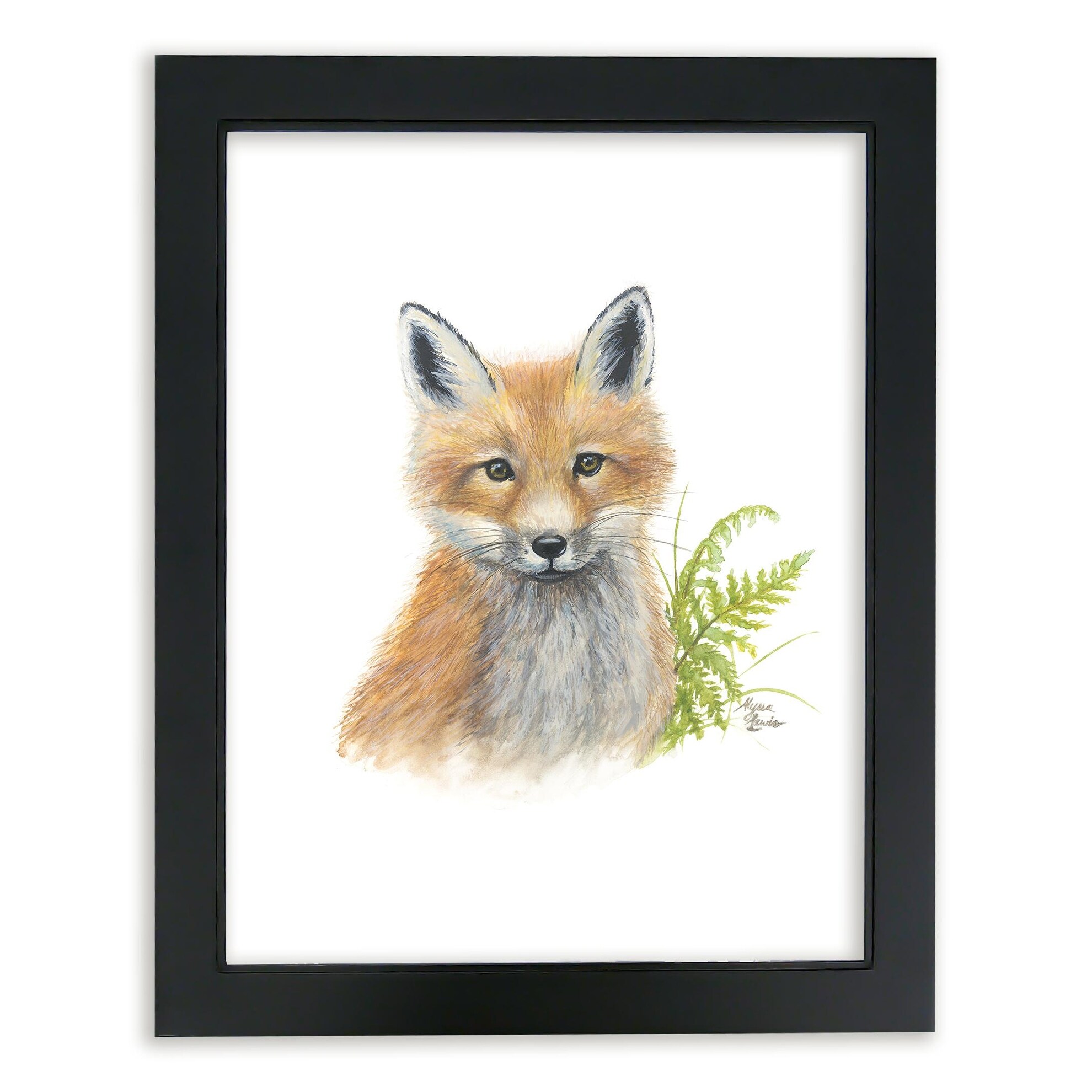 "Woodland Littles 2" - Fox - Individual Framed Print - Black - 16" x 20"