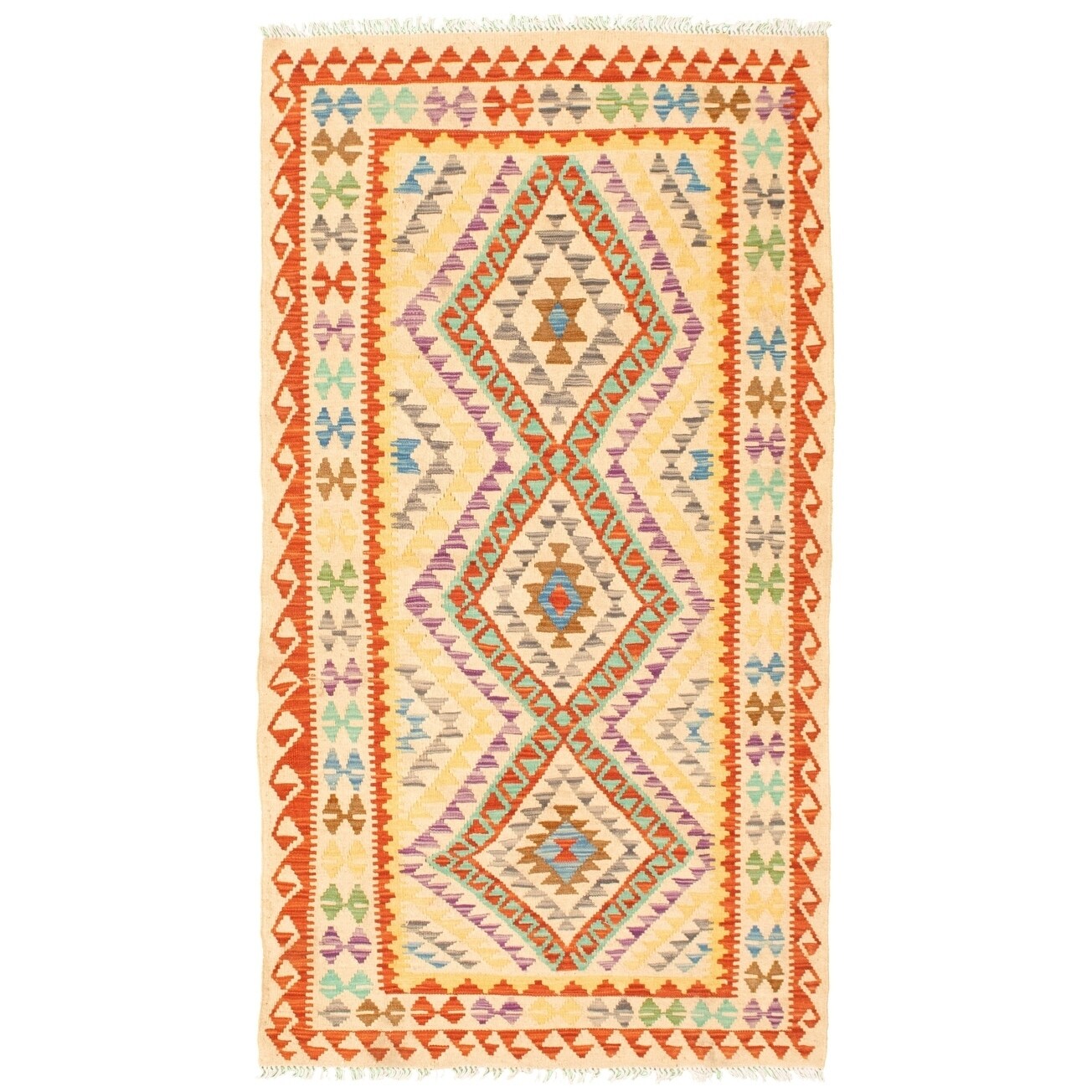 ECARPETGALLERY Flat-weave Bold and Colorful Ivory, Red Wool Kilim - 4'0 x 6'0