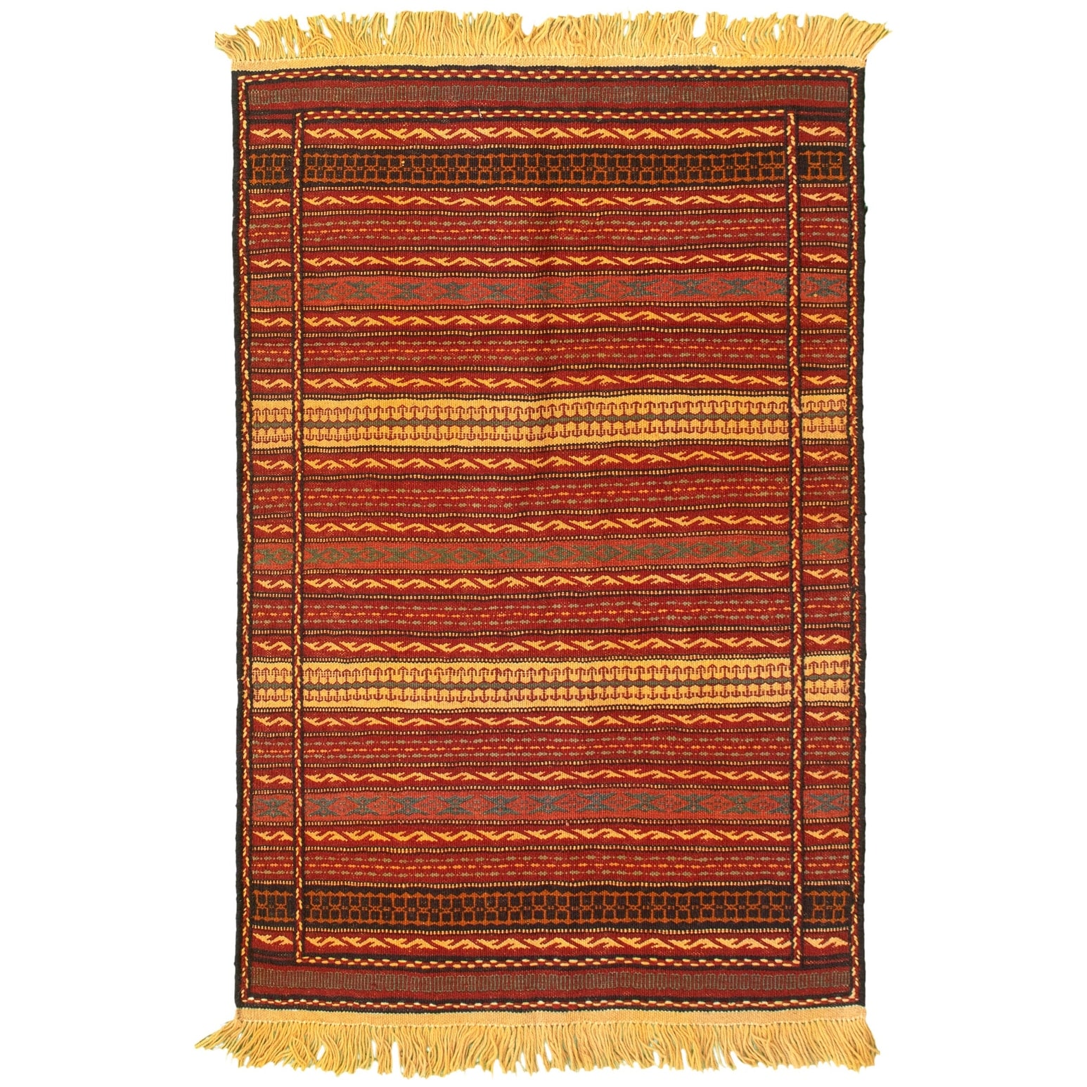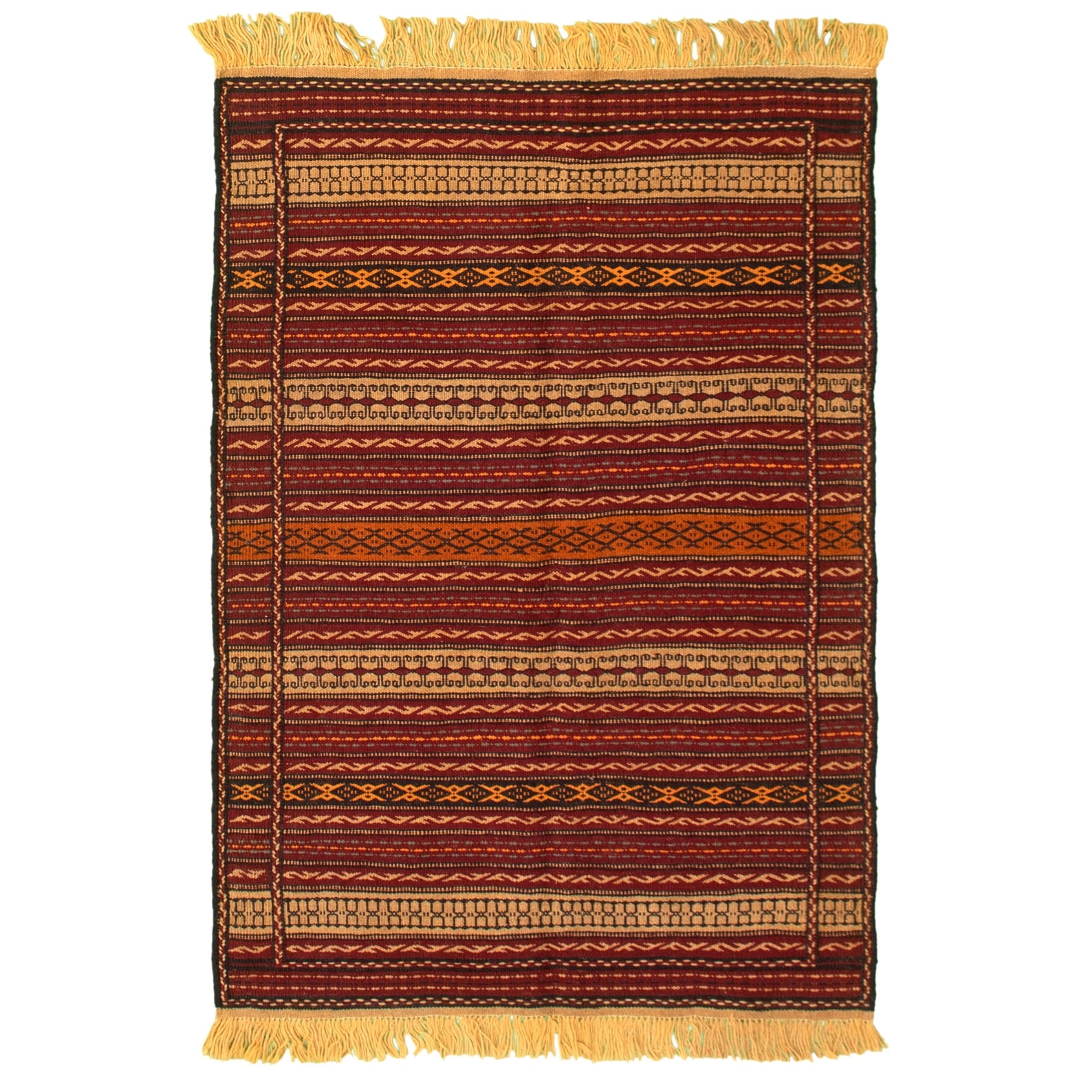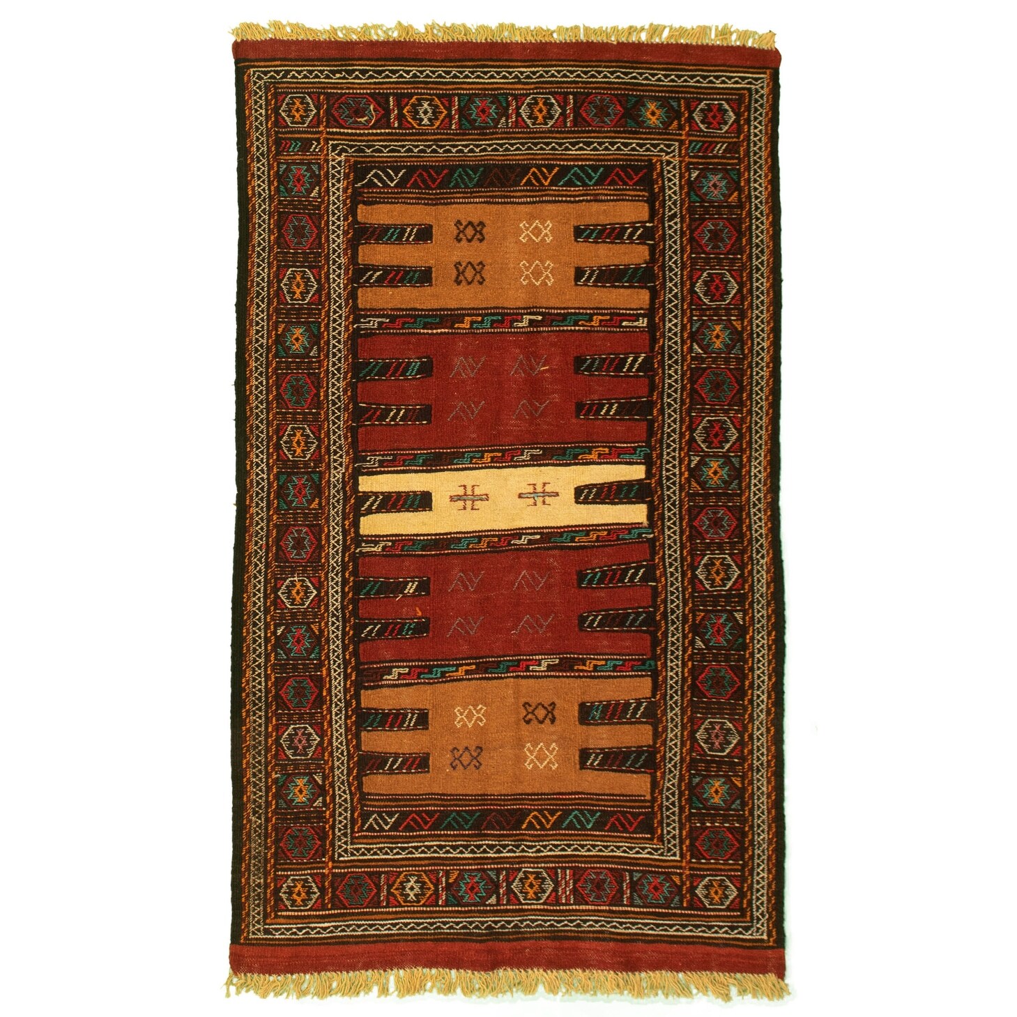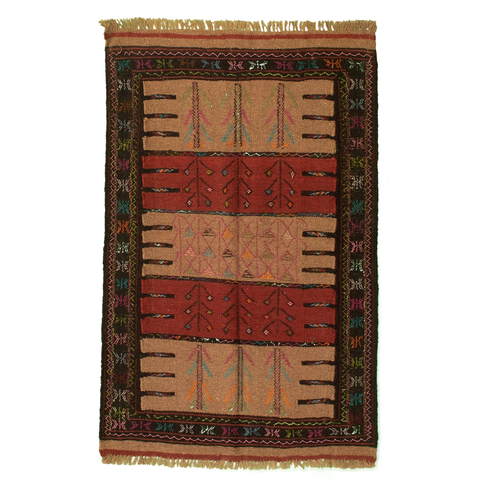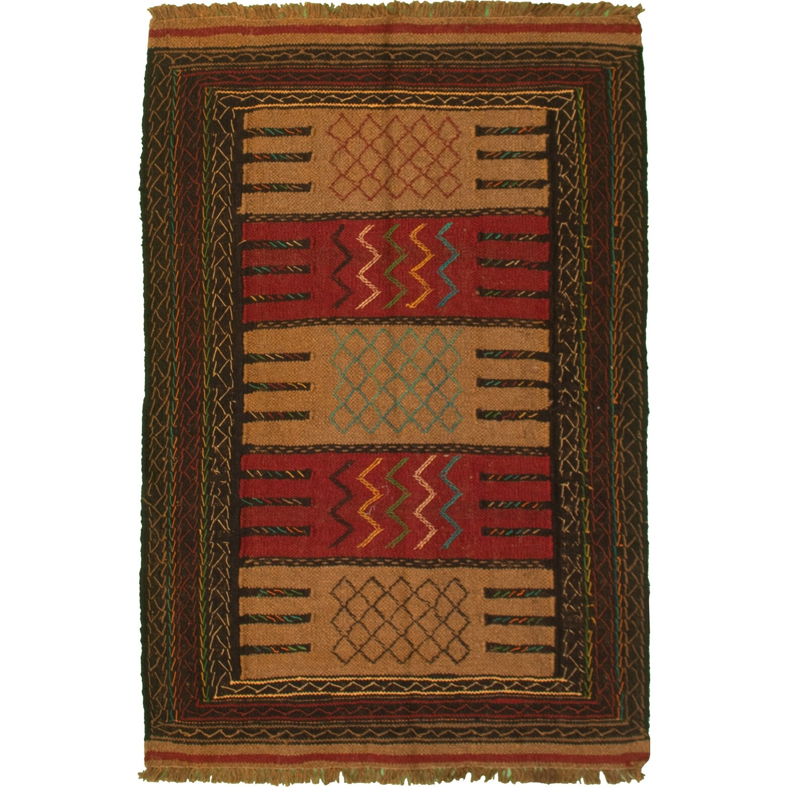 ECARPETGALLERY Flat-weave Bold and Colorful Brown Wool Kilim - 3'4 x 6'7