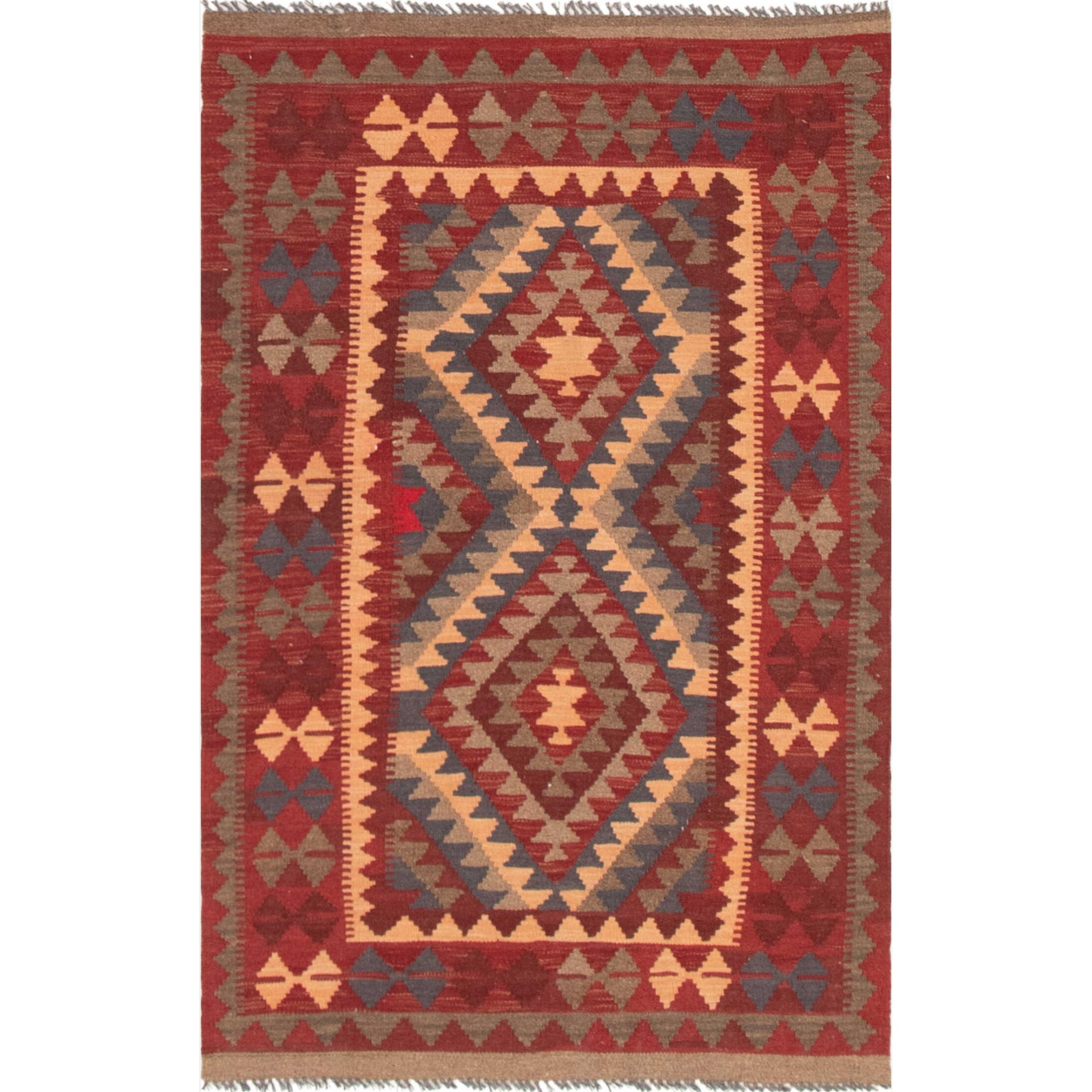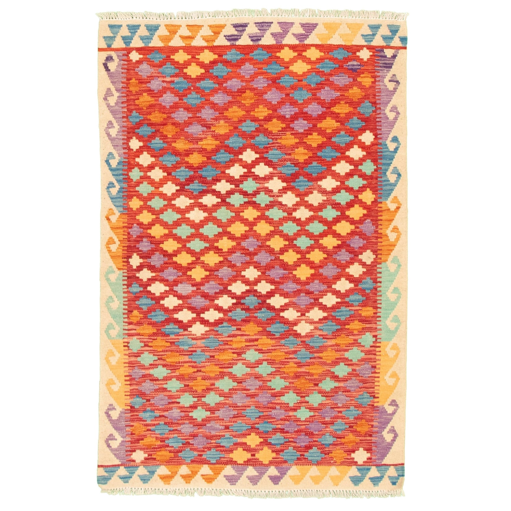 ECARPETGALLERY Flat-weave Bold and Colorful Red Wool Kilim - 3'4 x 5'0