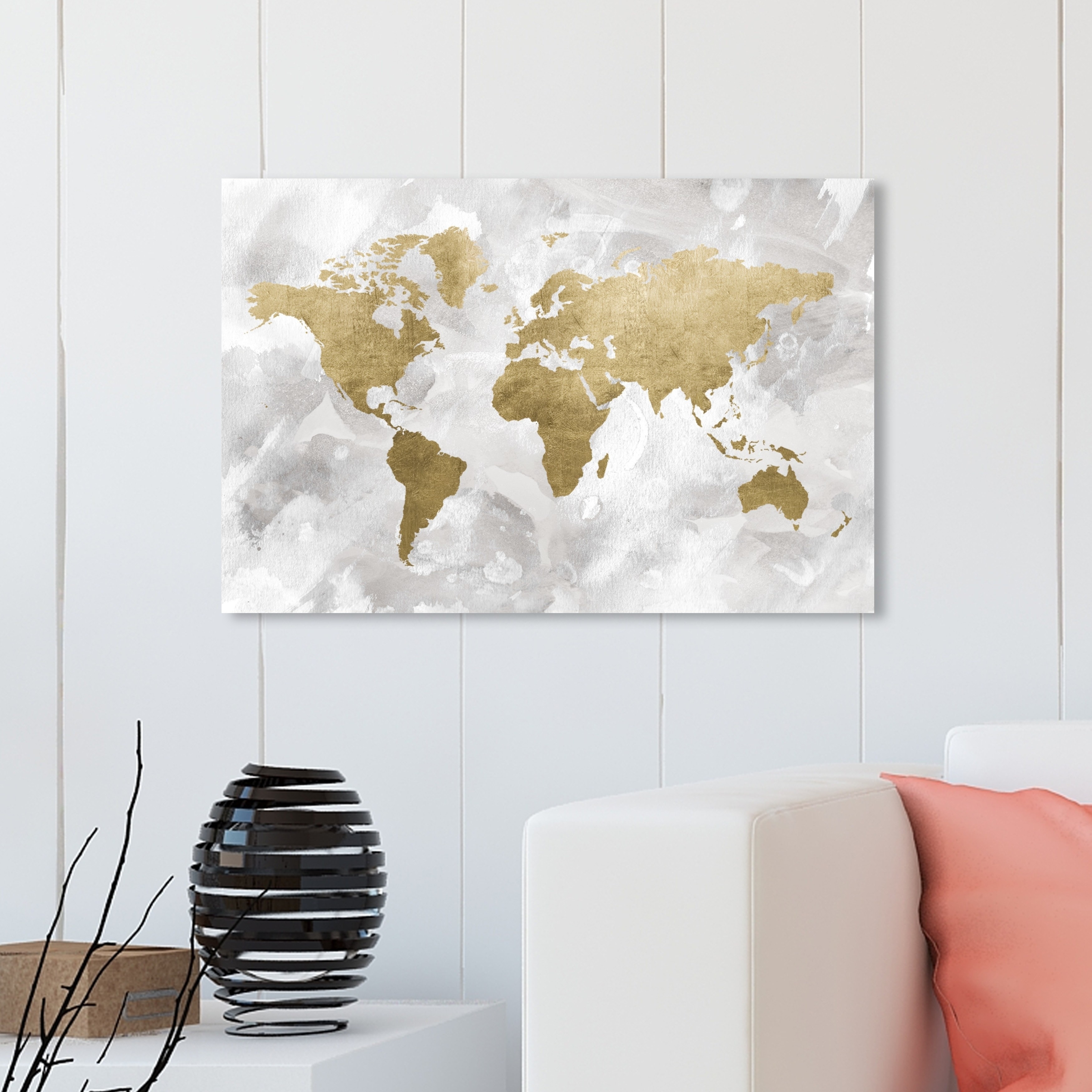 Oliver Gal Maps and Flags Wall Art Canvas Prints 'Light Wash World Map' World Maps - Gold, White