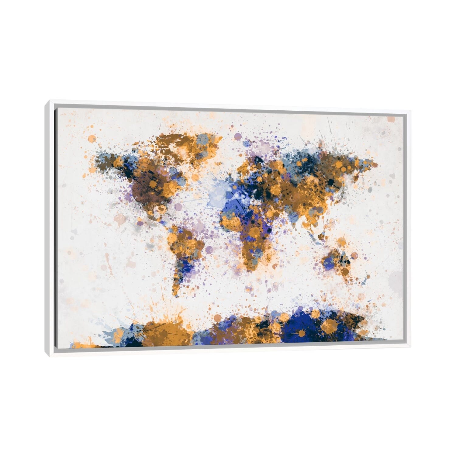 iCanvas "World Map Paint Drops IV" by Michael Tompsett Framed