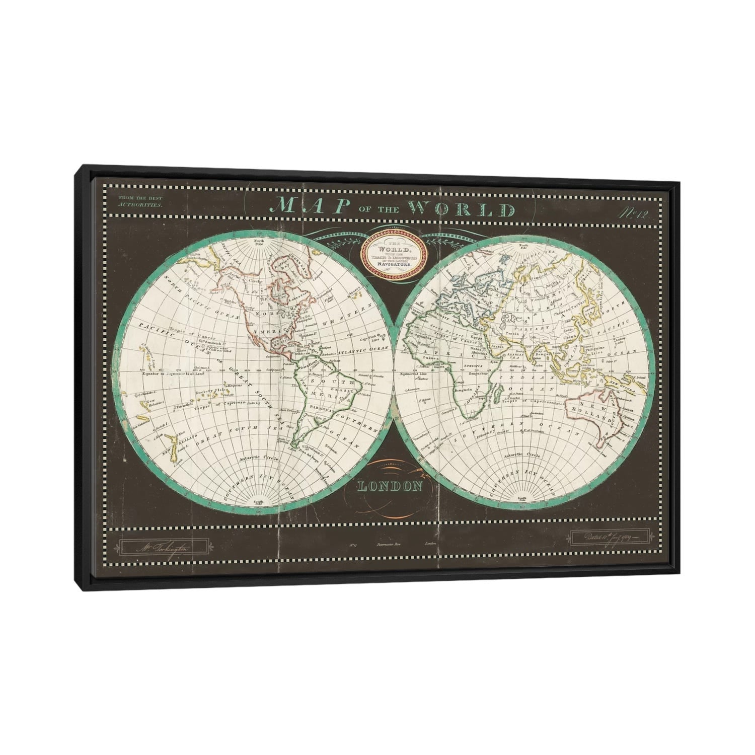 iCanvas "World Map III" by Michael Tompsett Framed Canvas Print