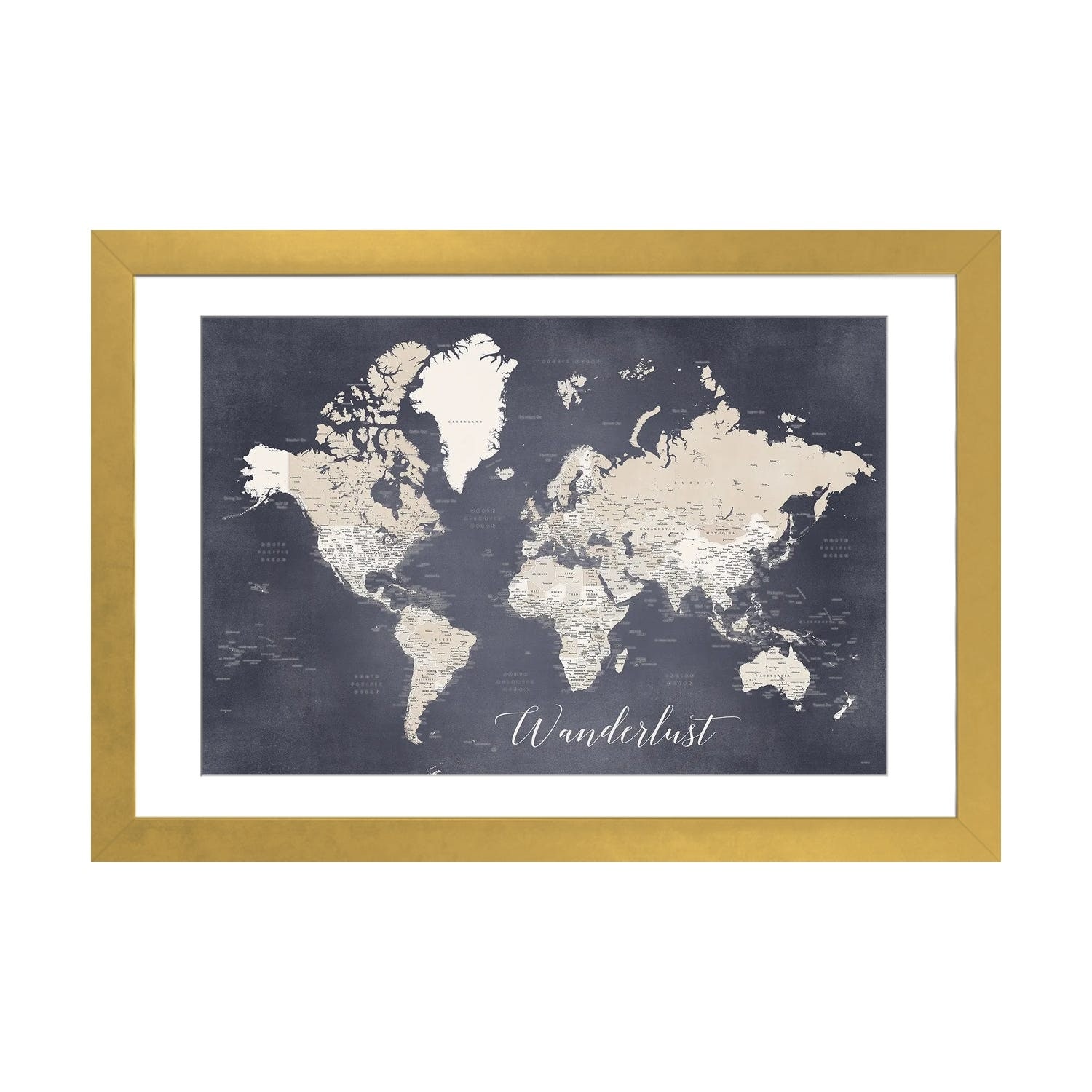 iCanvas "Rustic Detailed World Map Lucille, Wanderlust" by blursbyai Framed