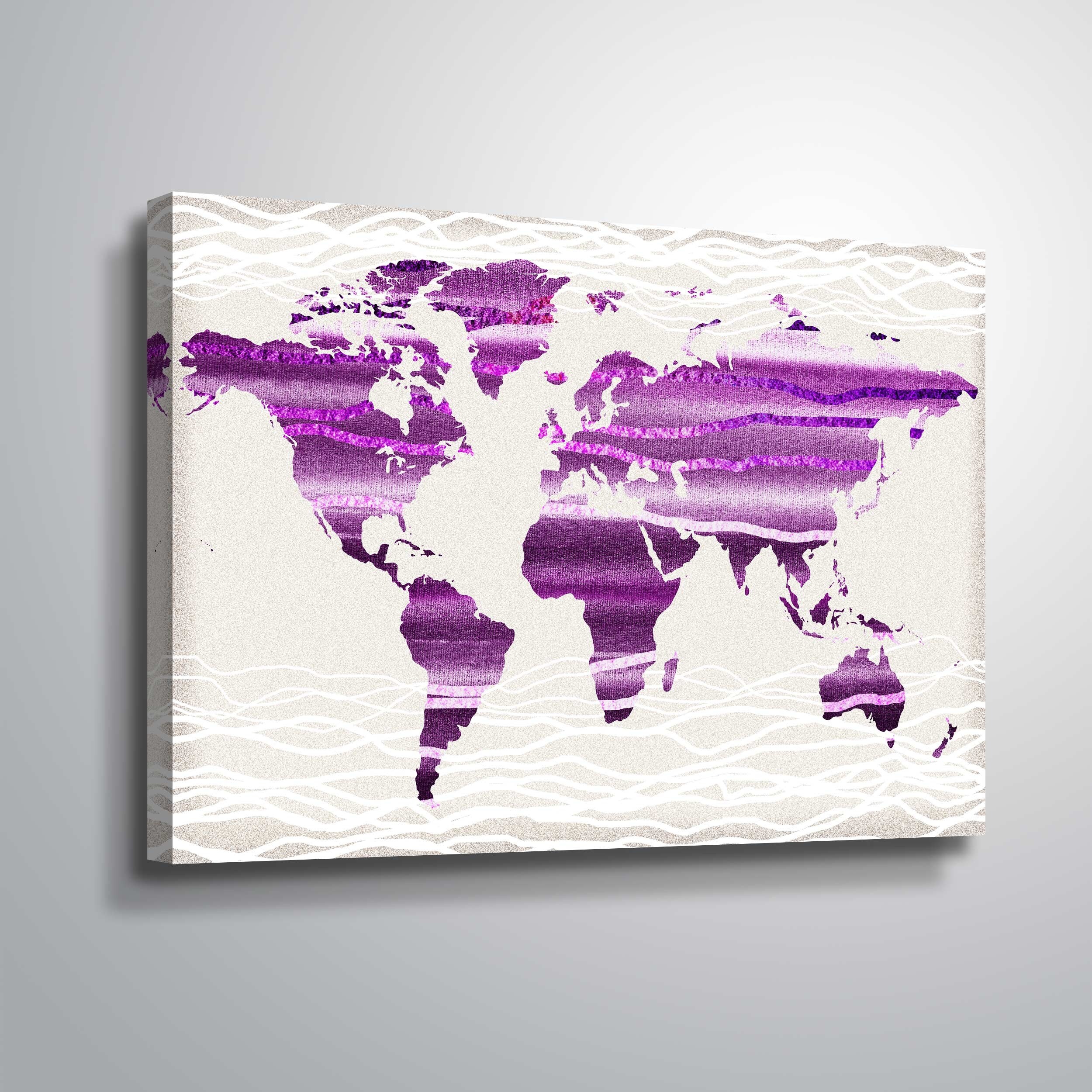 iCanvas "World Map Purple" by Michael Tompsett