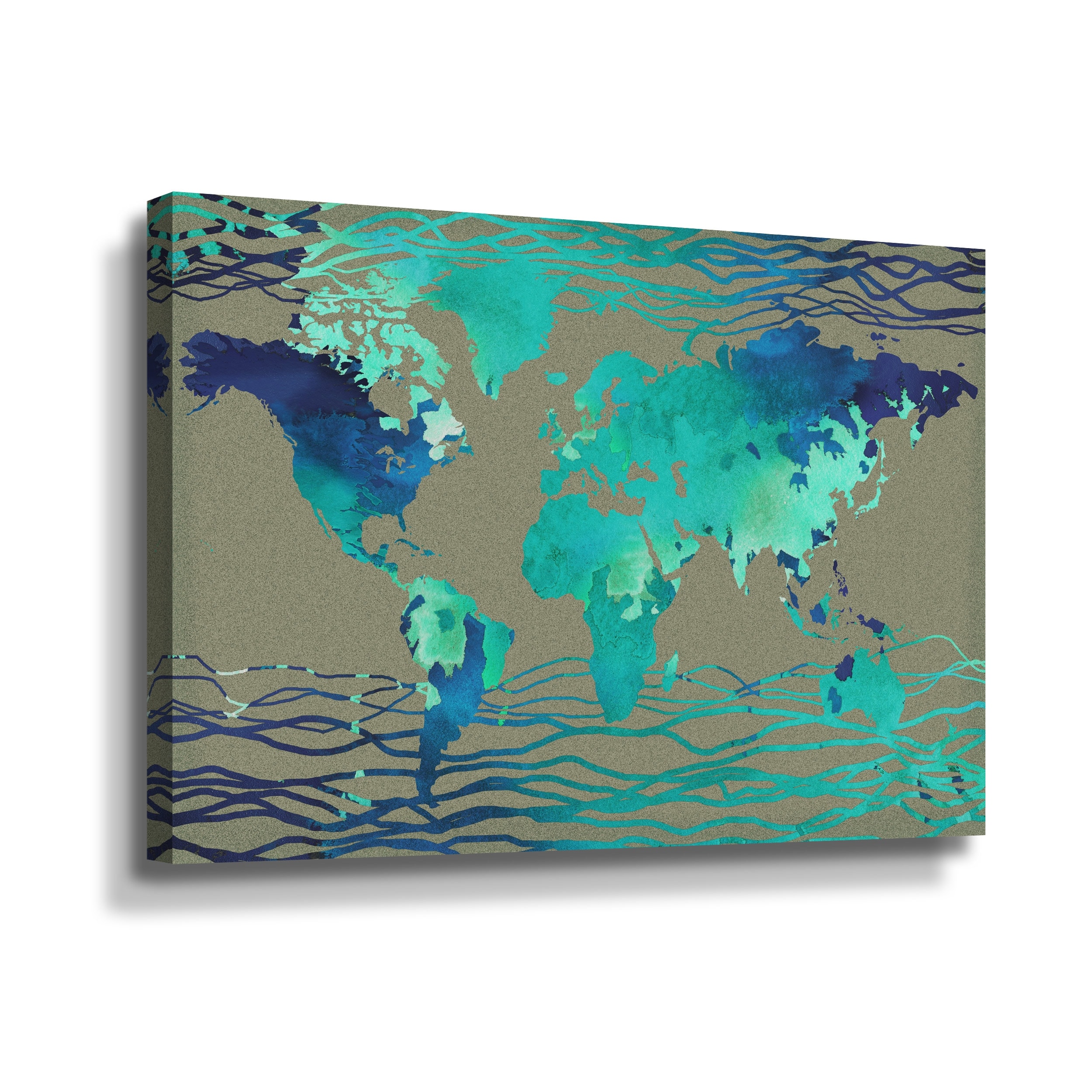 Turquoise Wave Colorful World Map Silhouette Gallery Wrapped Floater-framed Canvas by Irina Sztukowski