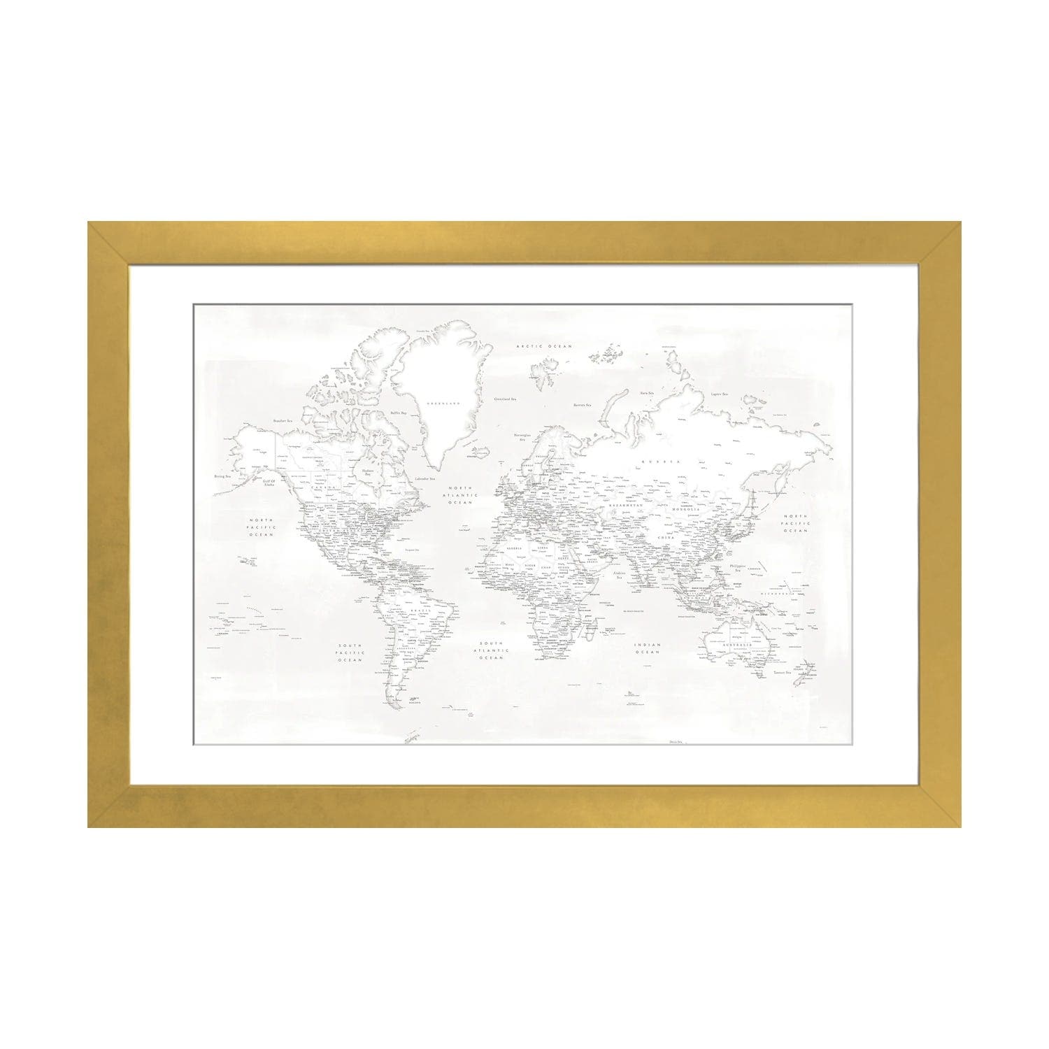 iCanvas "Detailed World Map Maeli White" by blursbyai