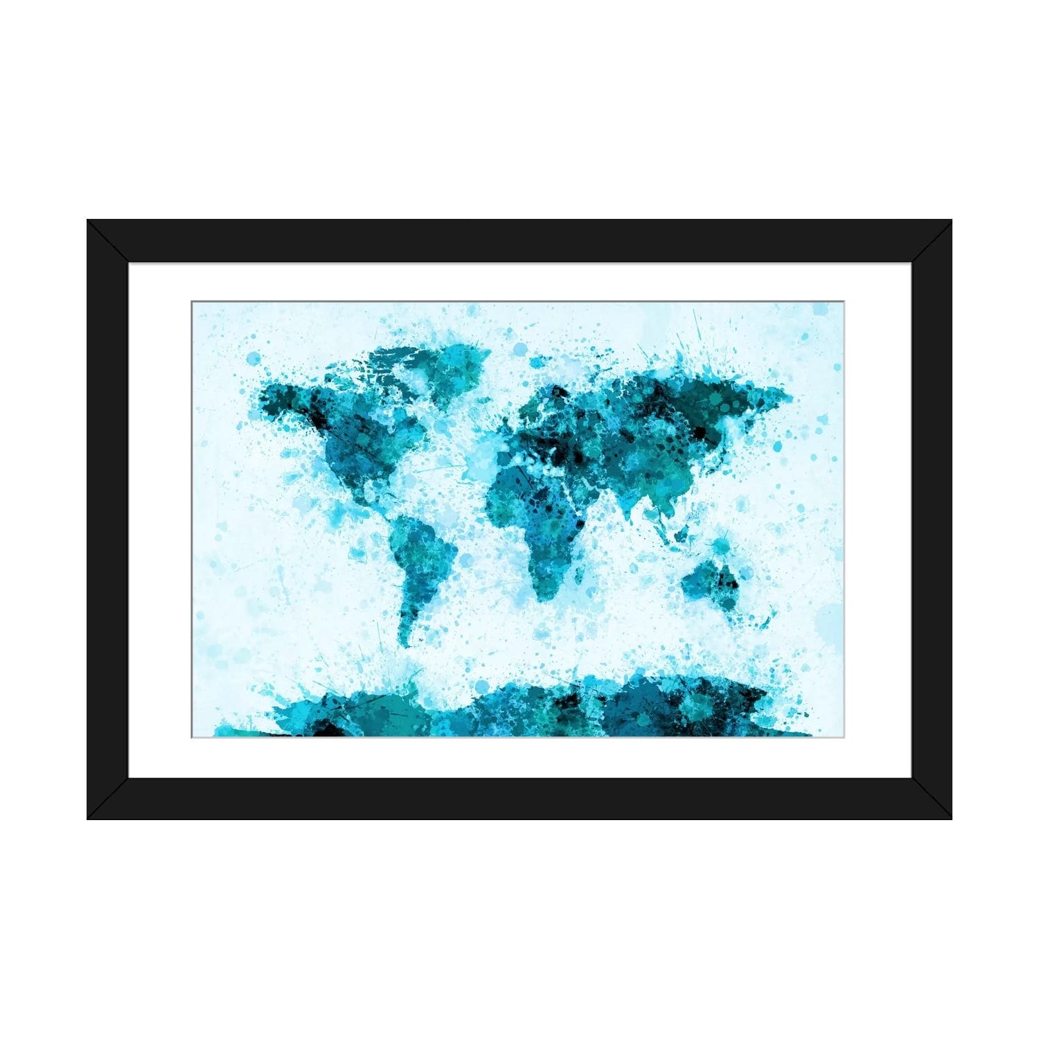iCanvas "World Map Paint Splashes (Blue)" by Michael Tompsett