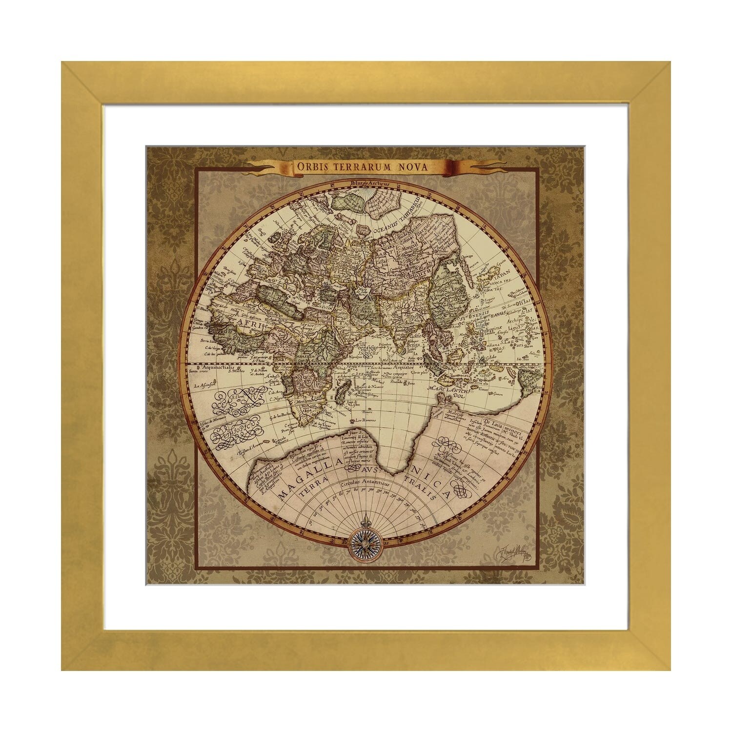 iCanvas "Damask World Map II" by Elizabeth Medley