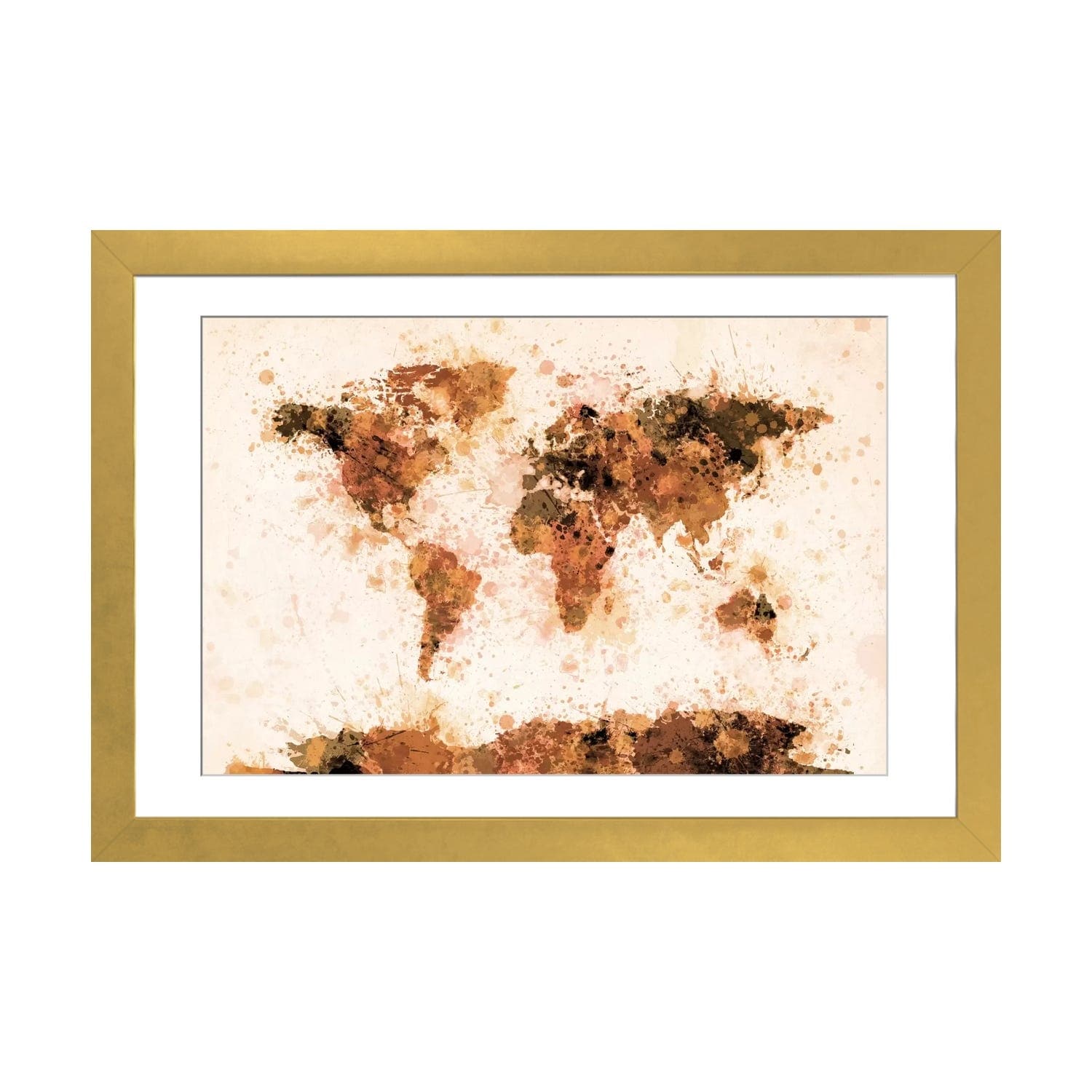 iCanvas "Bronze Paint Splash World Map" by Michael Tompsett